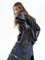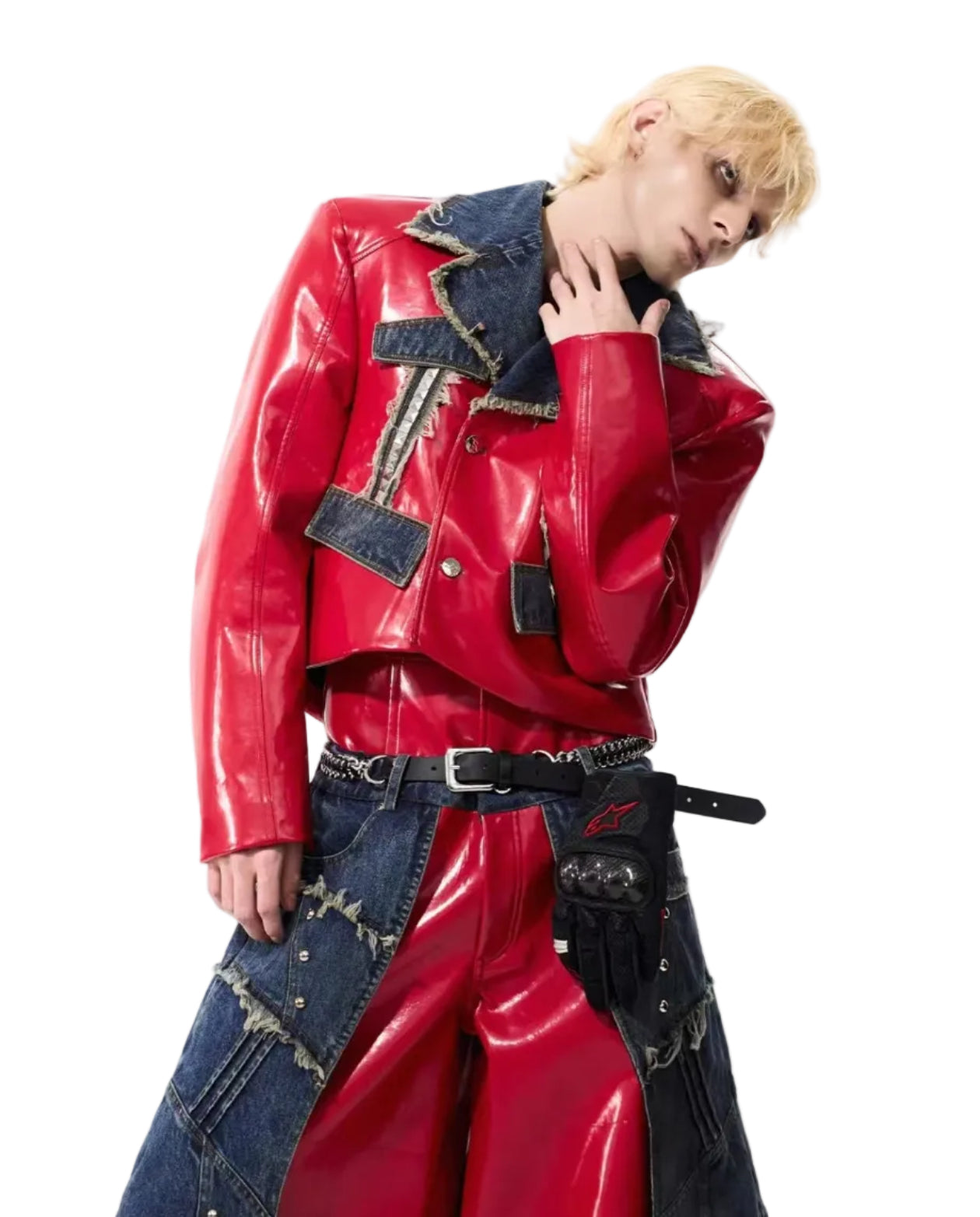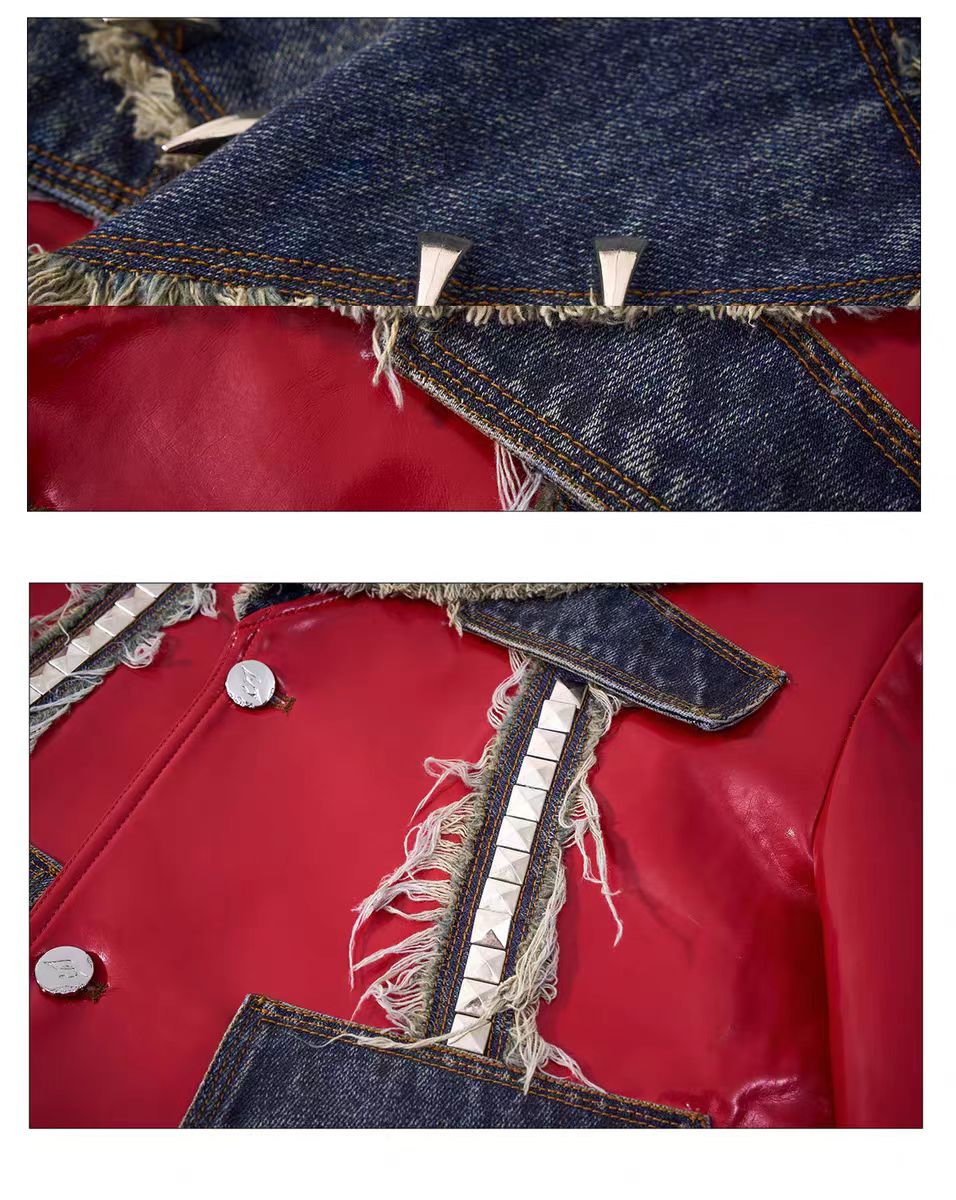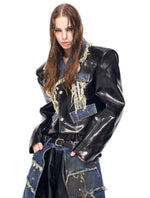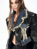 Патчwork куртка из искусственной кожи с изношенным денимом