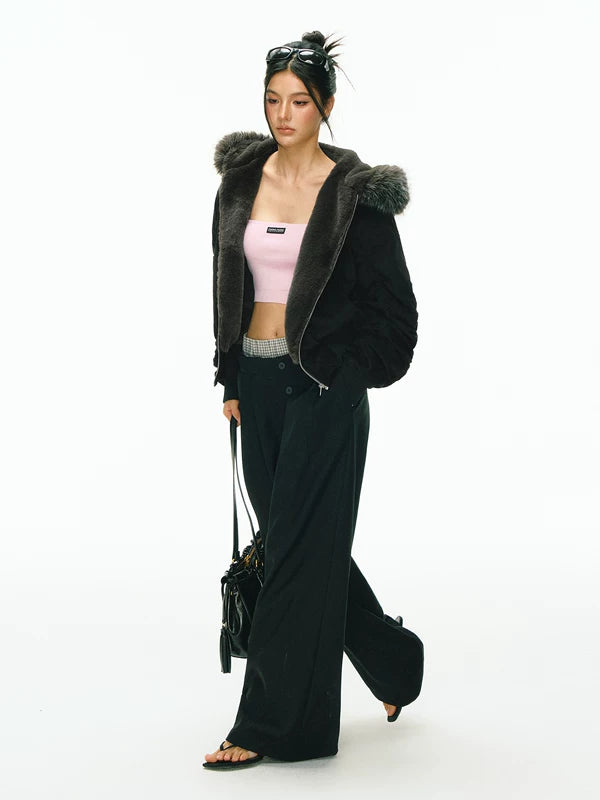 Худи из хлопка с отстегивающимся меховым воротником