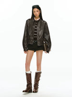 Куртка-бомбер из искусственной кожи с завязками на шее