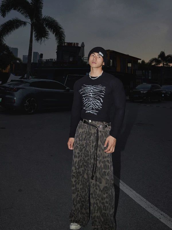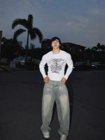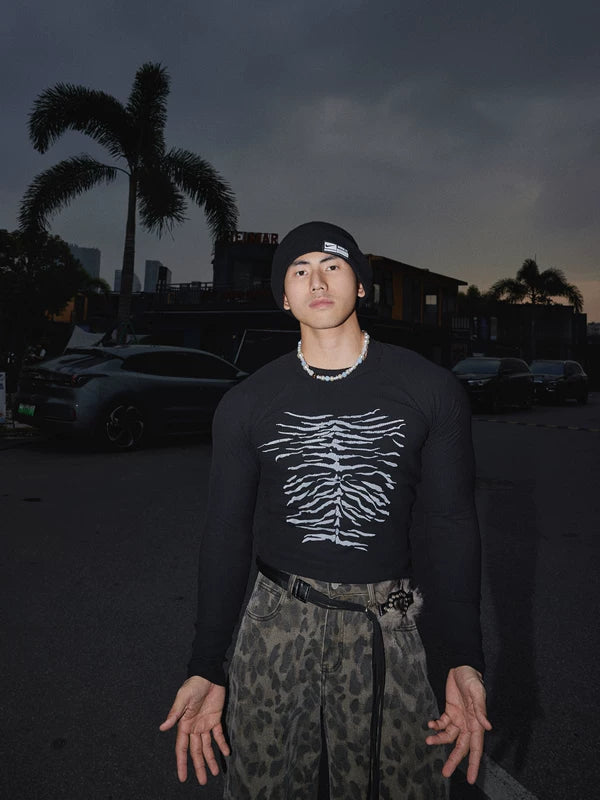 Футболка с длинным рукавом и принтом скелета в стиле линейного искусства