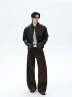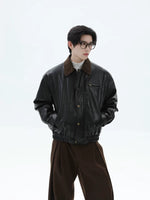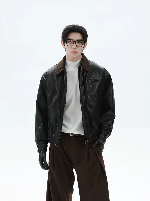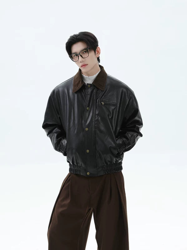 Ретро куртка из искусственной кожи с вельветовым воротником