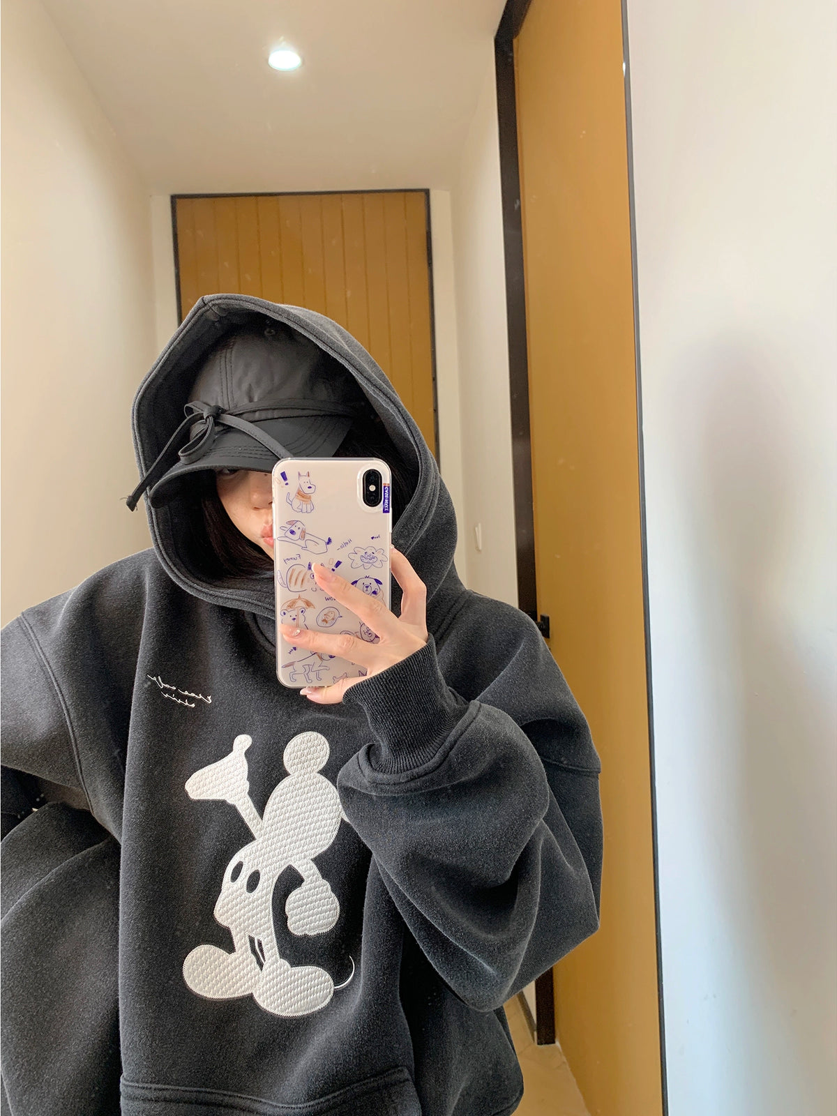 Увеличенный худи с флисовой подкладкой и потертым графическим принтом