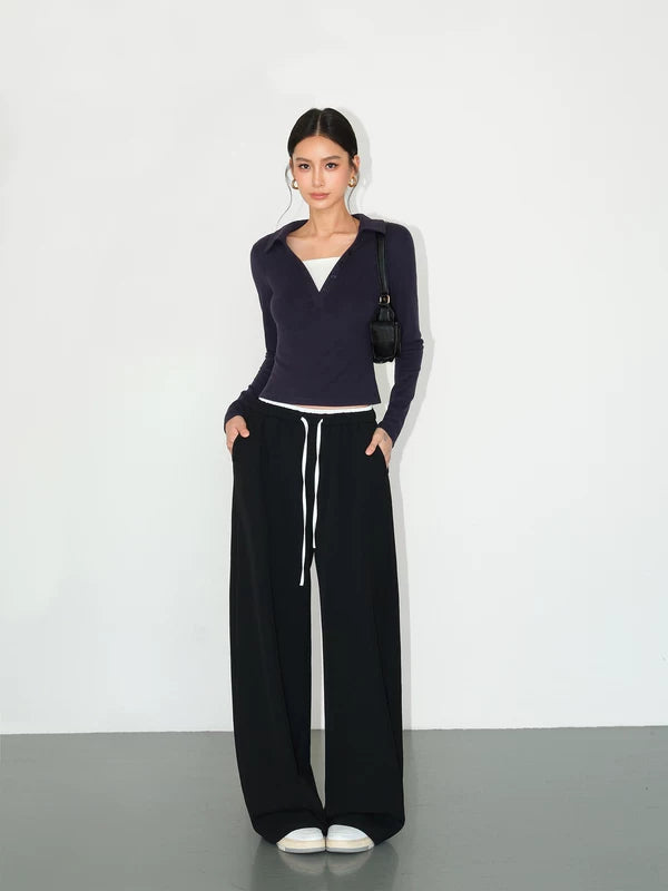 Долгий рукав трикотажная футболка с V-образным вырезом