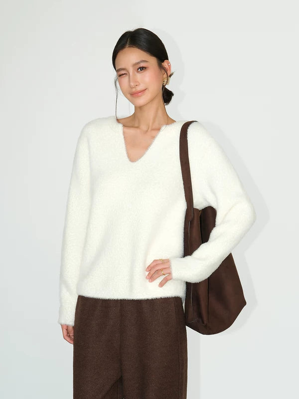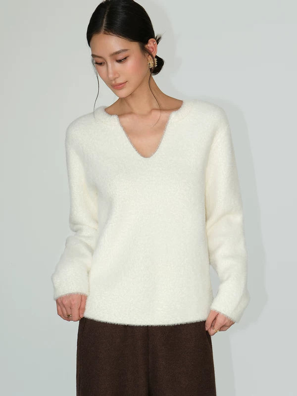 Пуловер с V-образным вырезом из искусственного меха и кашемира