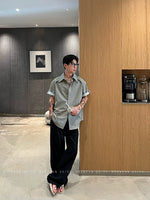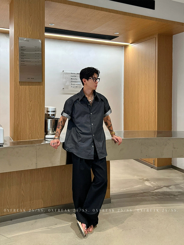 Camisa de manga corta de ajuste holgado con mangas enrolladas