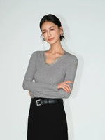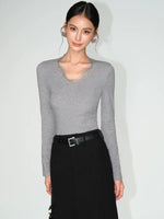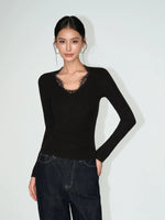 Топ с узким трикотажем и кружевной отделкой V-образным вырезом