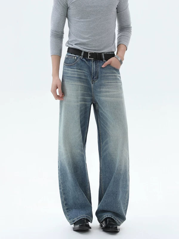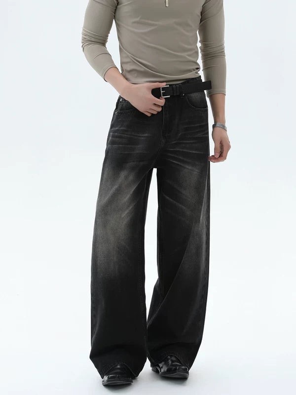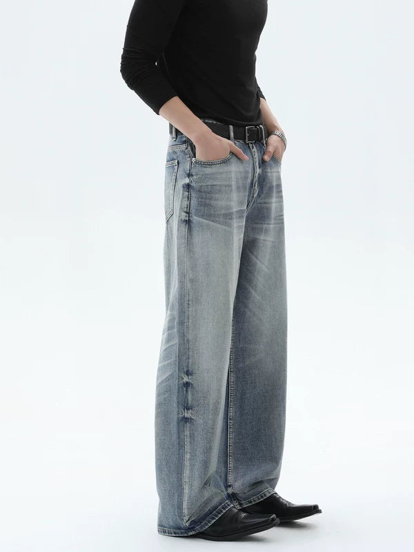 Джинсы с широкими прямыми штанинами в стиле distressed