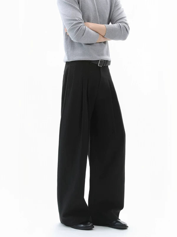 Широкие брюки из шерсти с двойными складками