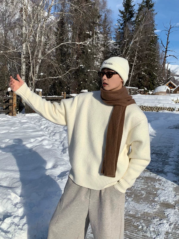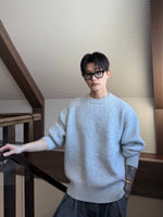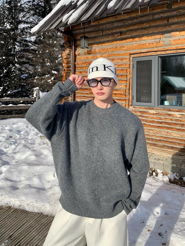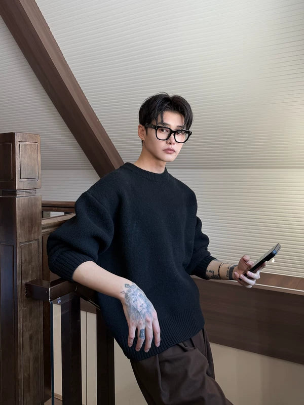 Свободный вязаный свитер с круглым вырезом из шерсти