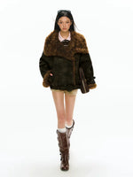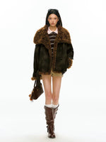 Пуховик с поясом и воротником из искусственного овчины