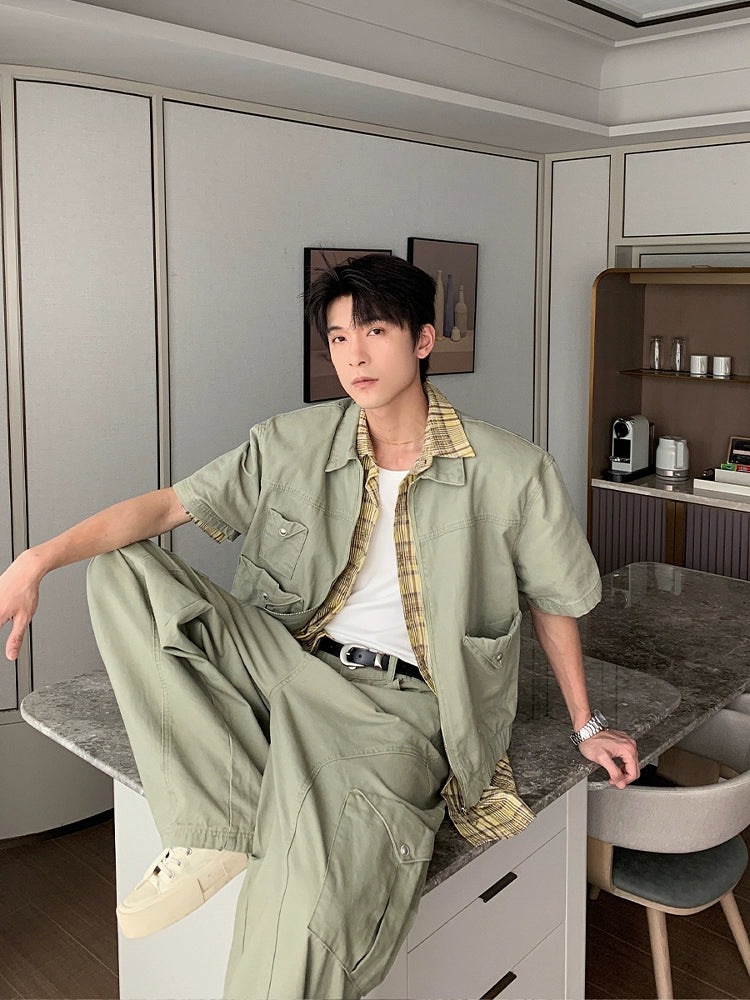 Cotton Denim Short Sleeve Top and Cargo Pants