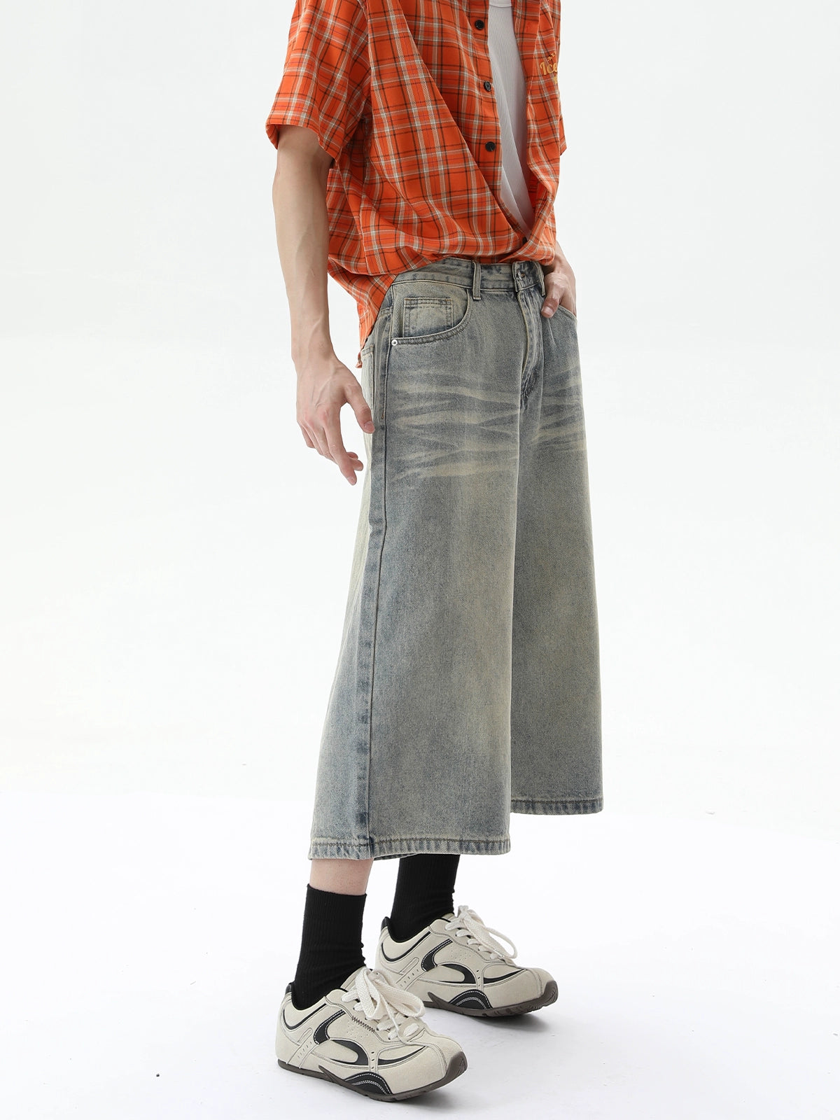 Cropped Wide-Leg Denim Cleanfit Pants