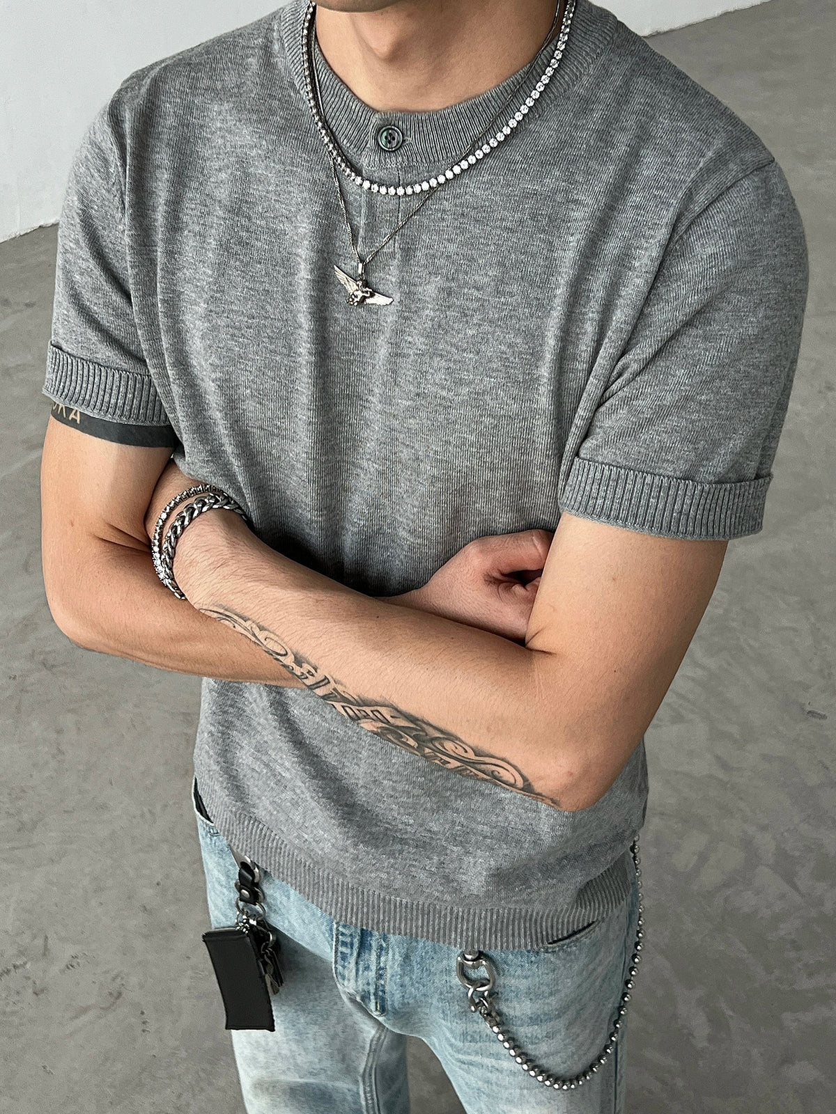 Crewneck Knitted Short Sleeve T-shirt