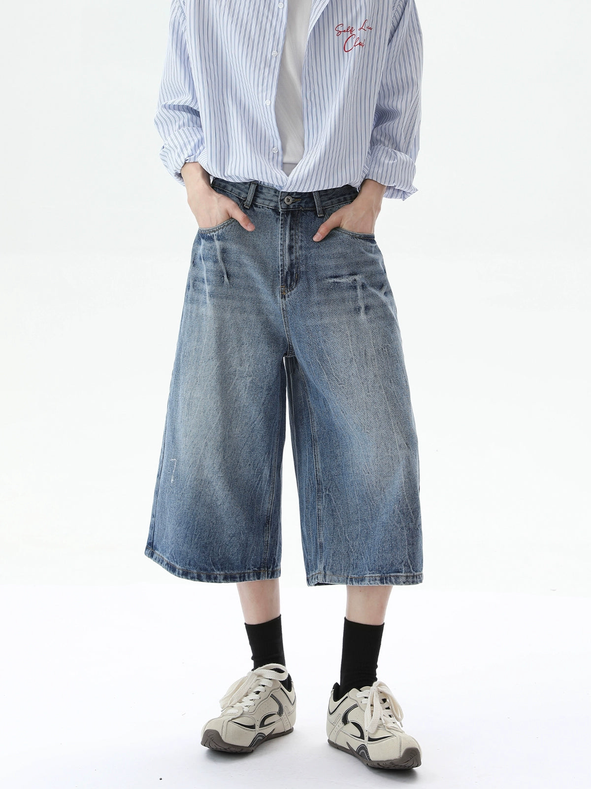 Loose Wide Leg Cropped Denim Pants