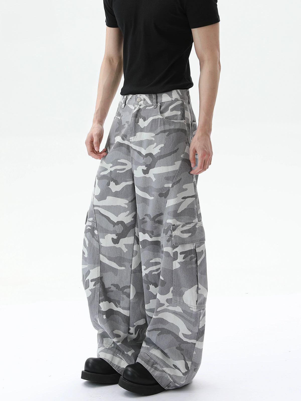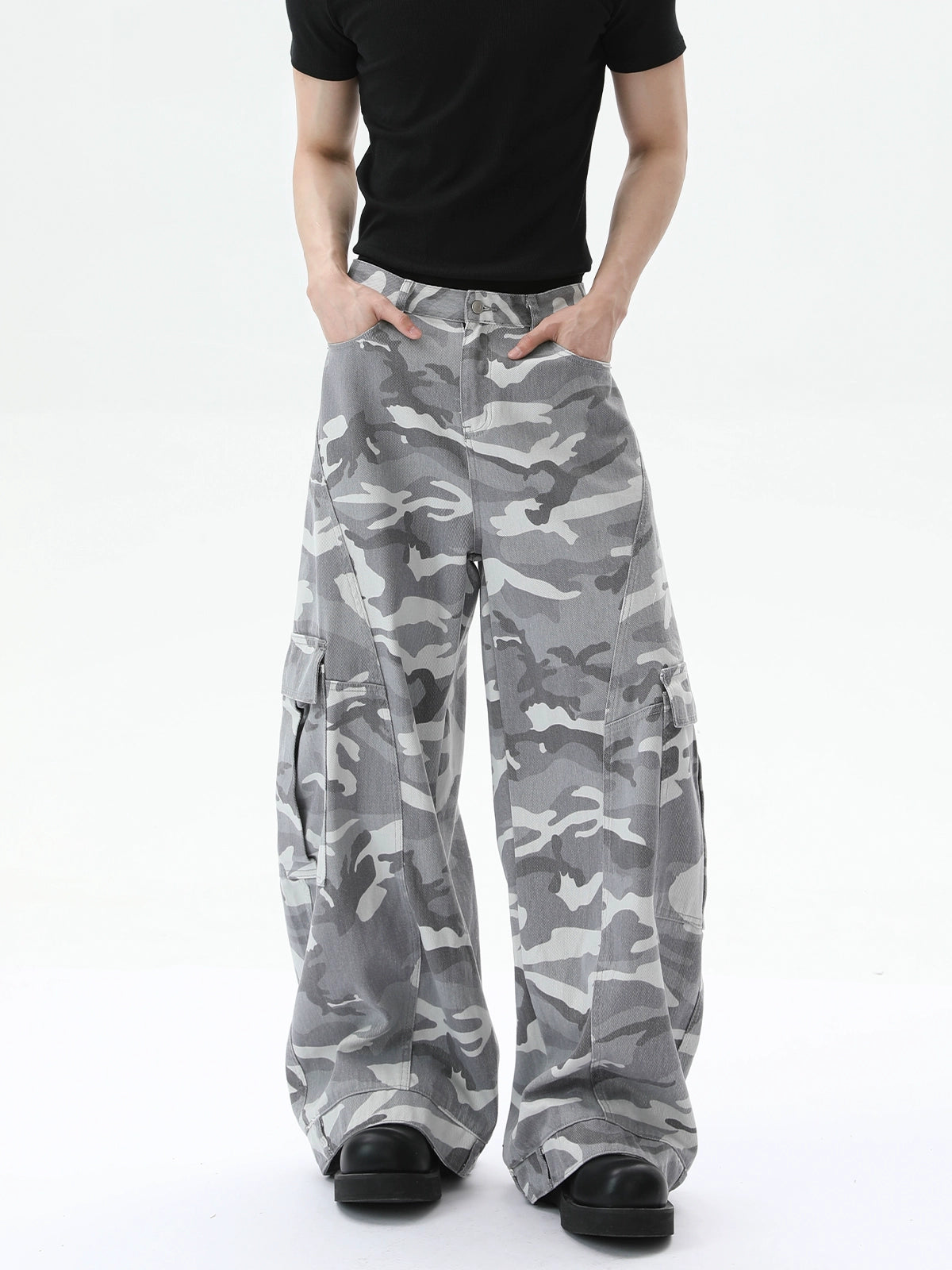 Multi-Pocket Camouflage Wide-Leg Cargo Pants