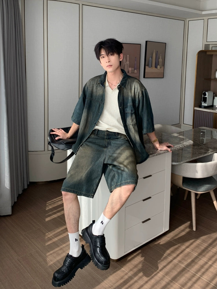 Short Sleeve Denim Shirt and Pants