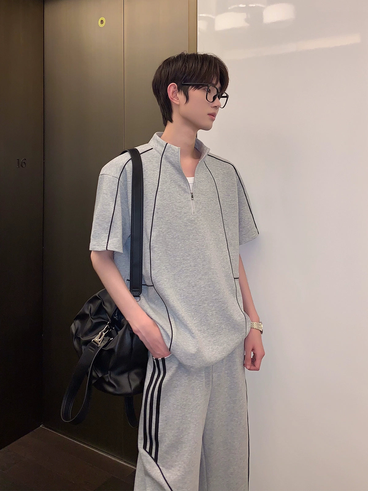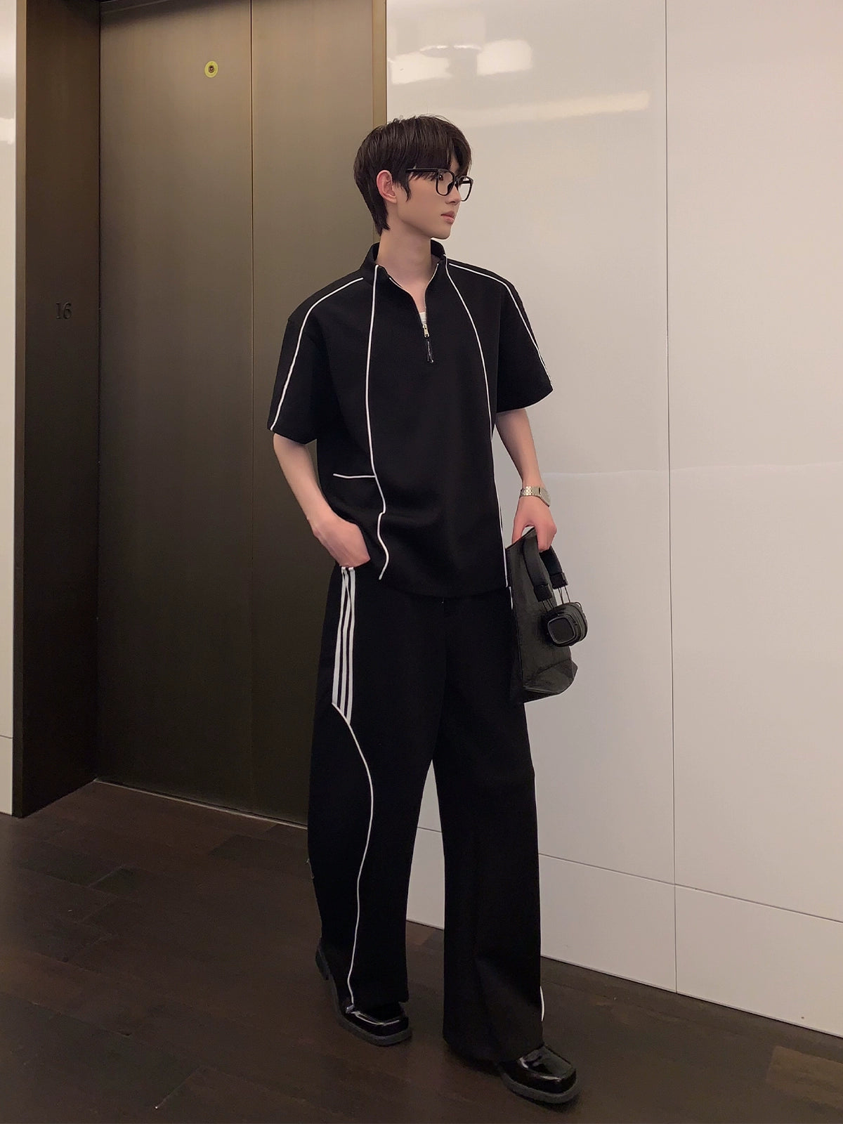 Short Sleeve Zip T-shirt and Wide-leg Pants