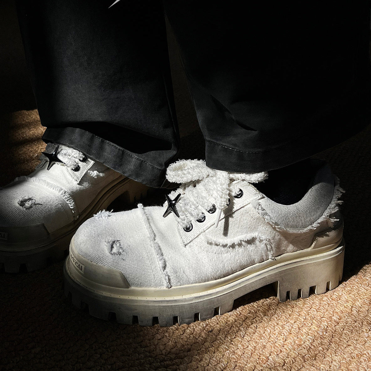 Chunky Denim Casual Derby Shoes
