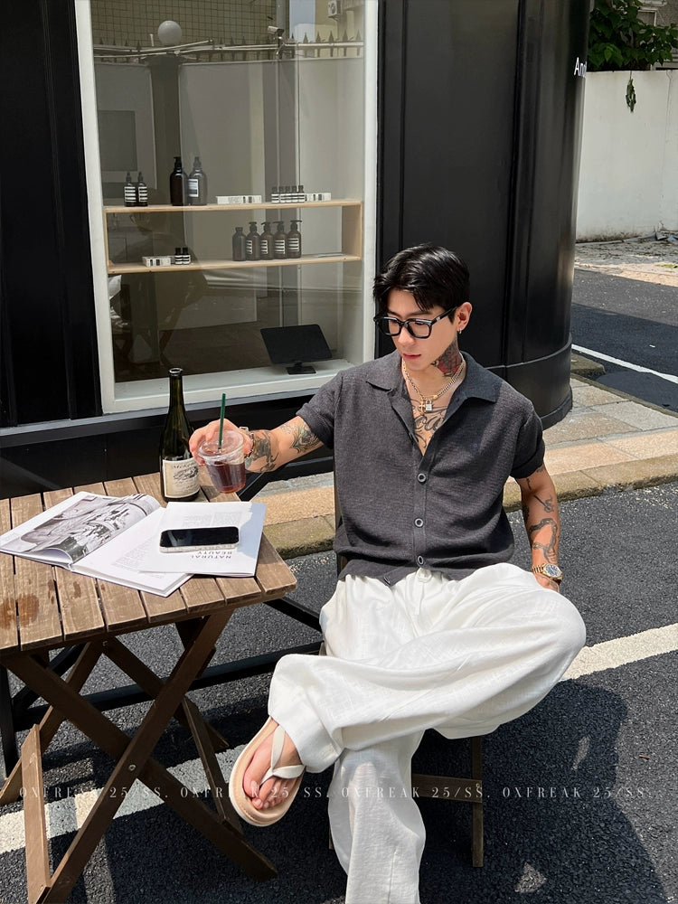 Knitted Short-Sleeve Button Shirt