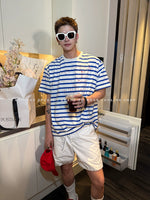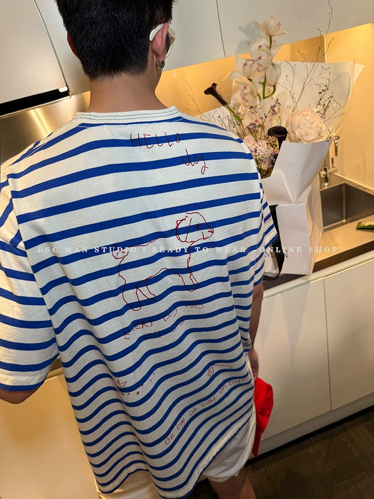 Graffiti Round Neck Striped T-Shirt