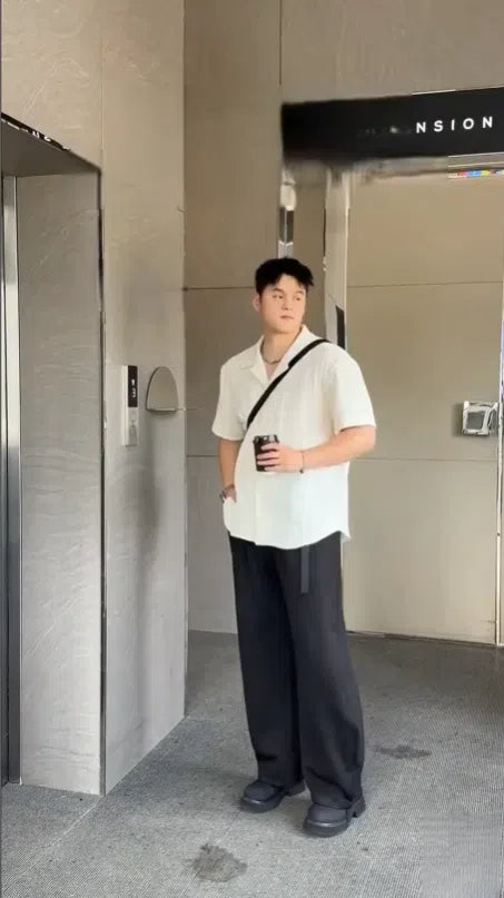 Cuban Collar Textured Short Sleeve Shirt