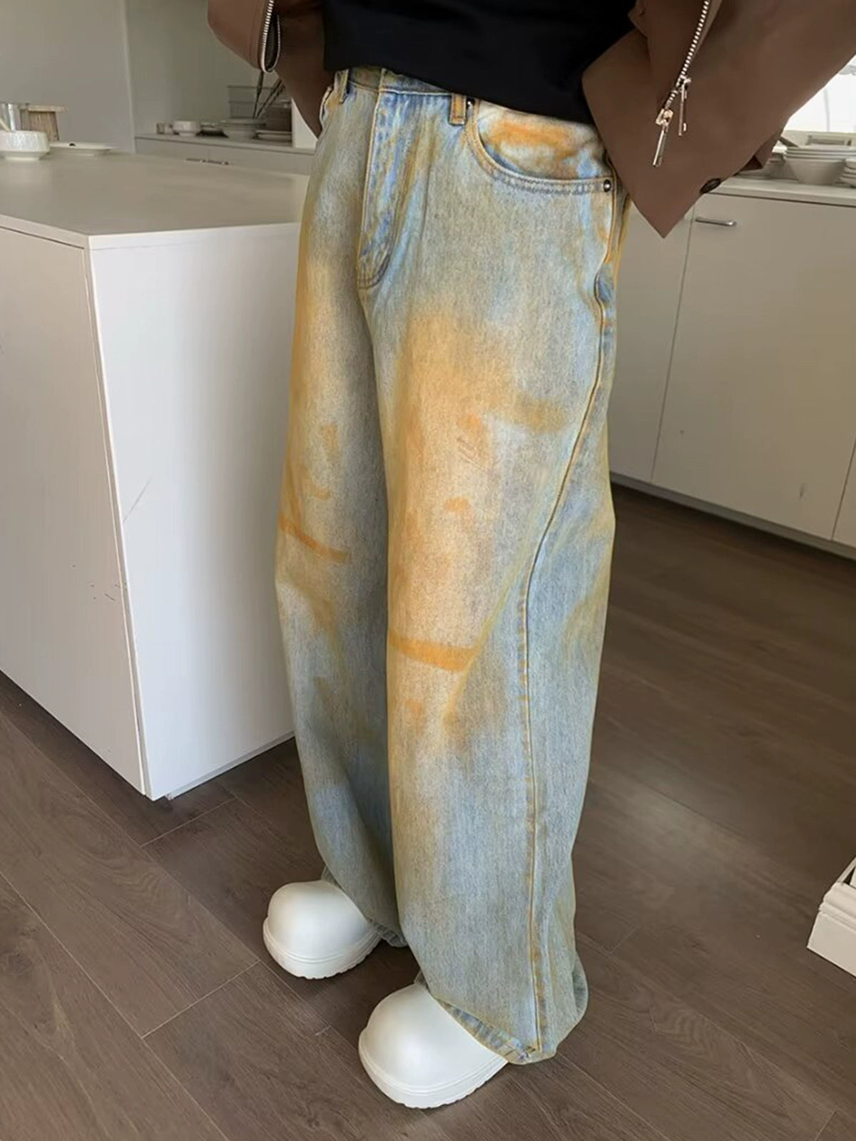 Distressed Loose Wide-Leg Retro Jeans