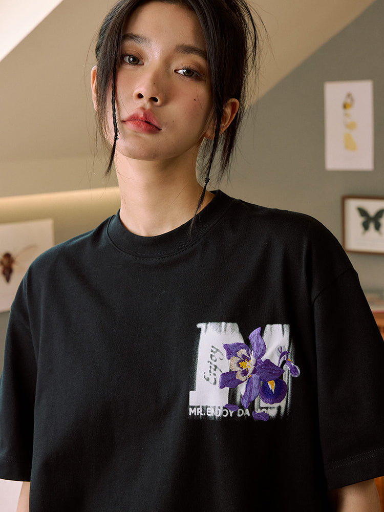 Floral Embroidery Graphic Short Sleeve T-shirt