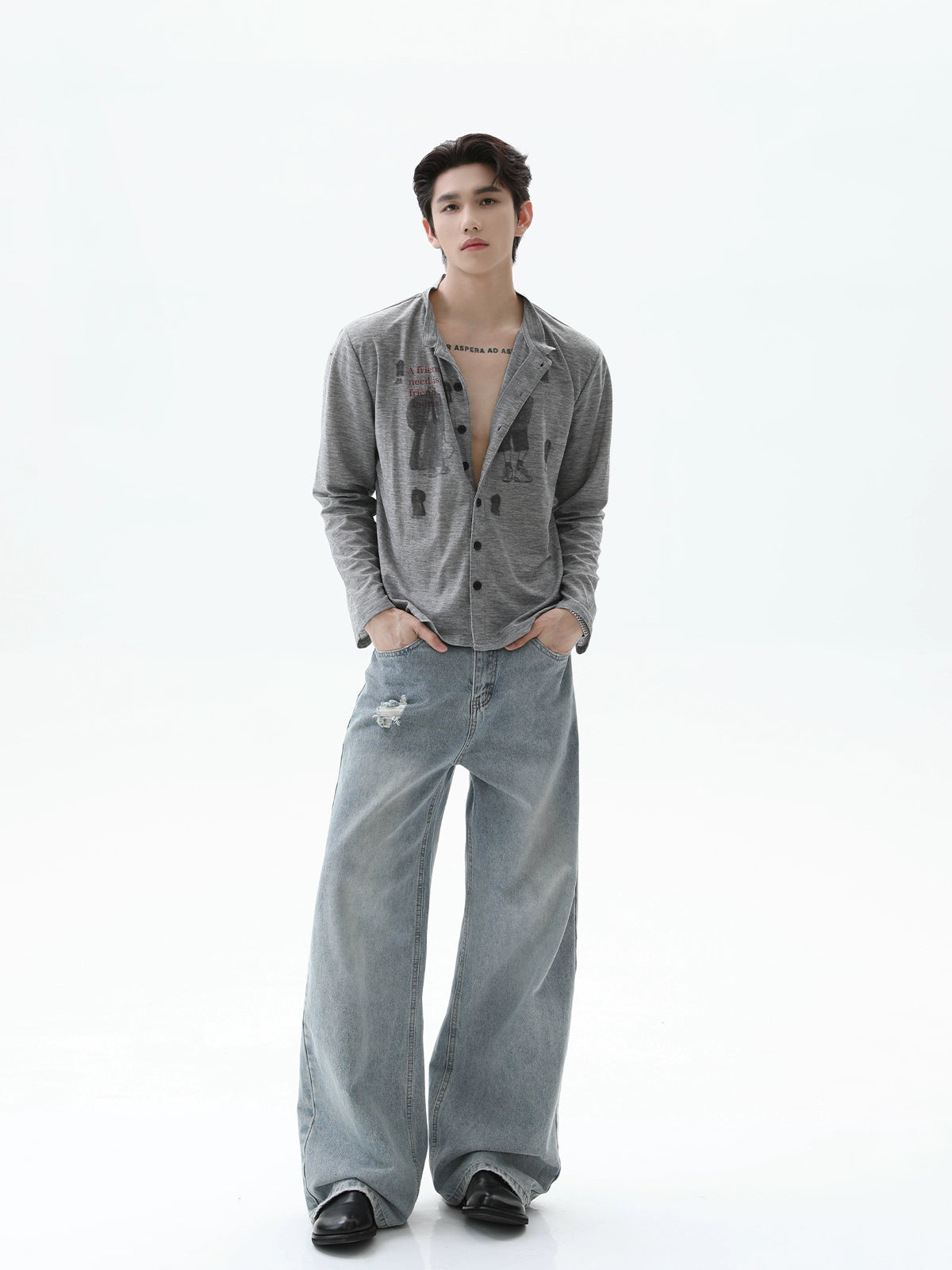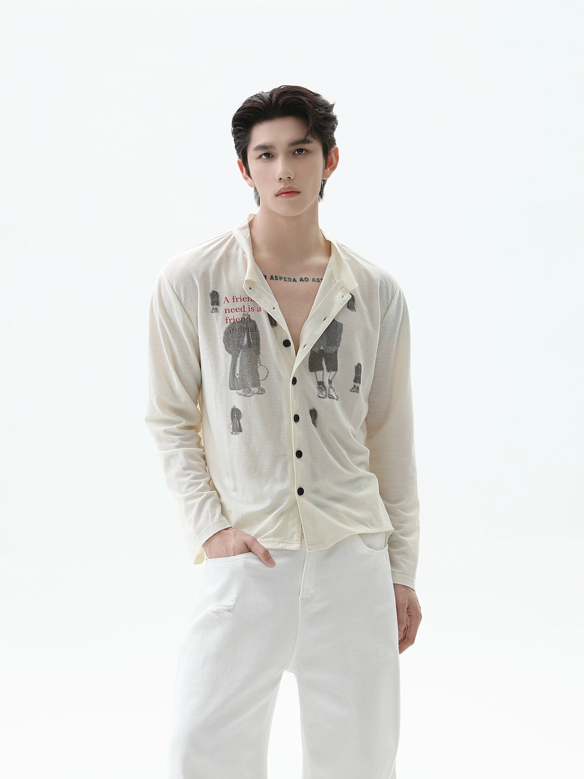 Lyocell Distressed Printed Casual Shirt