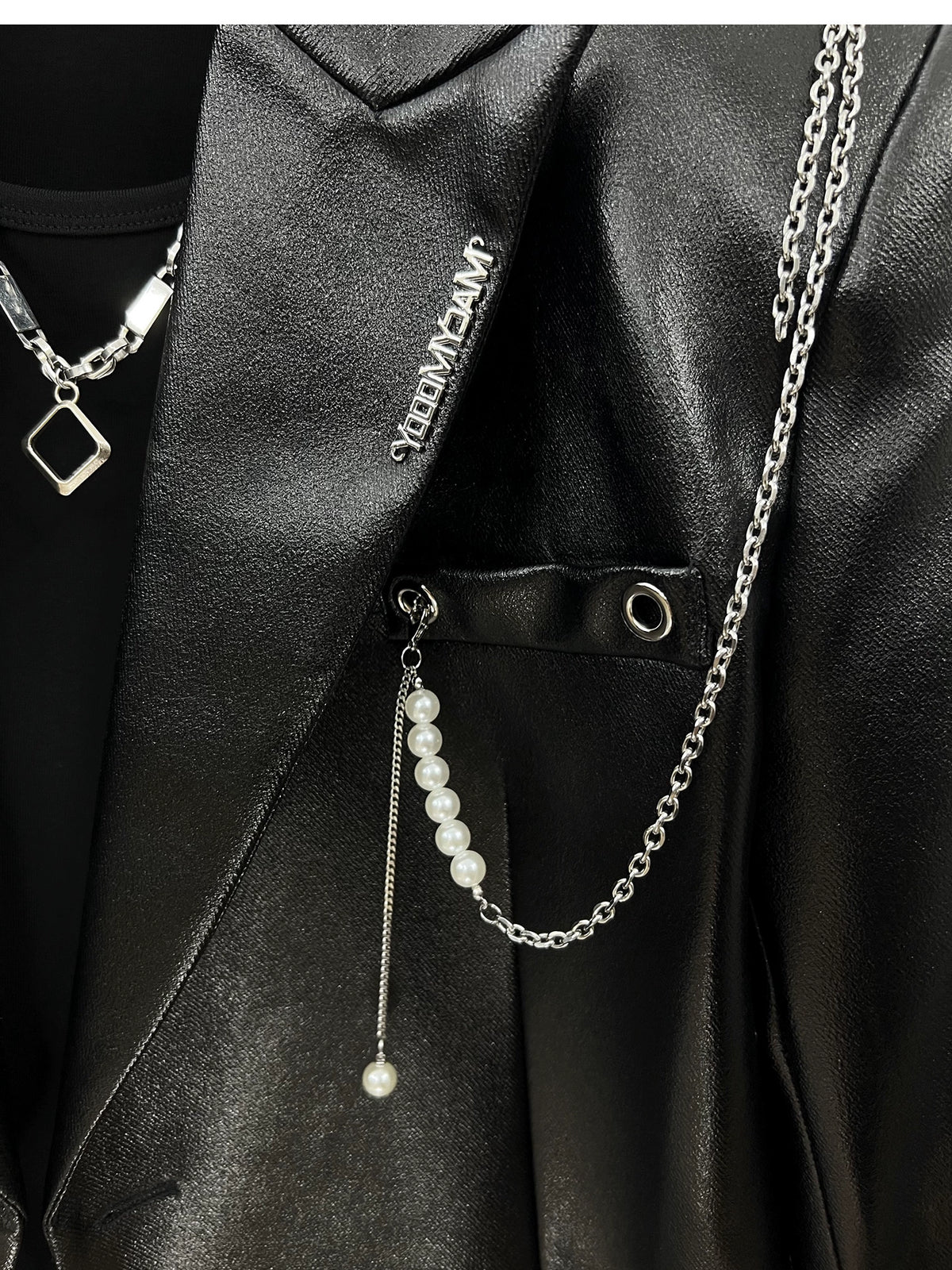 Metal Chain Accent Short Suit Jacket