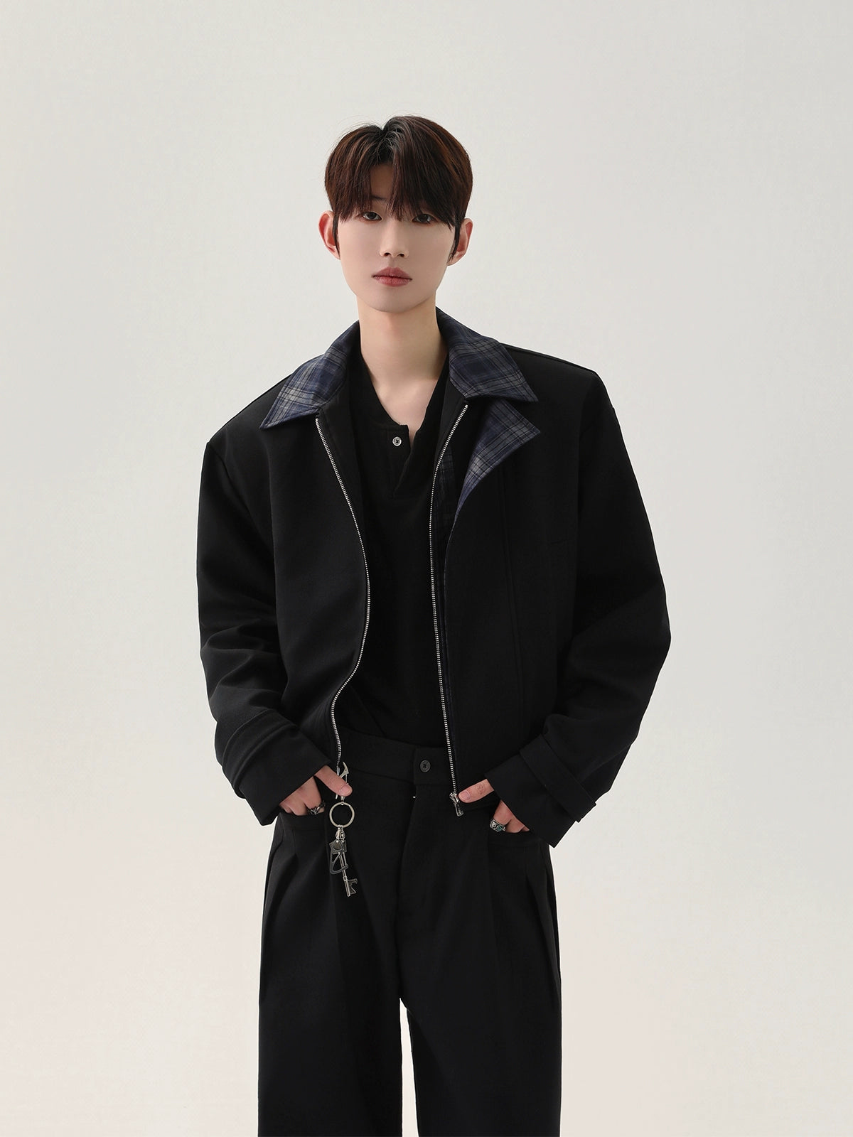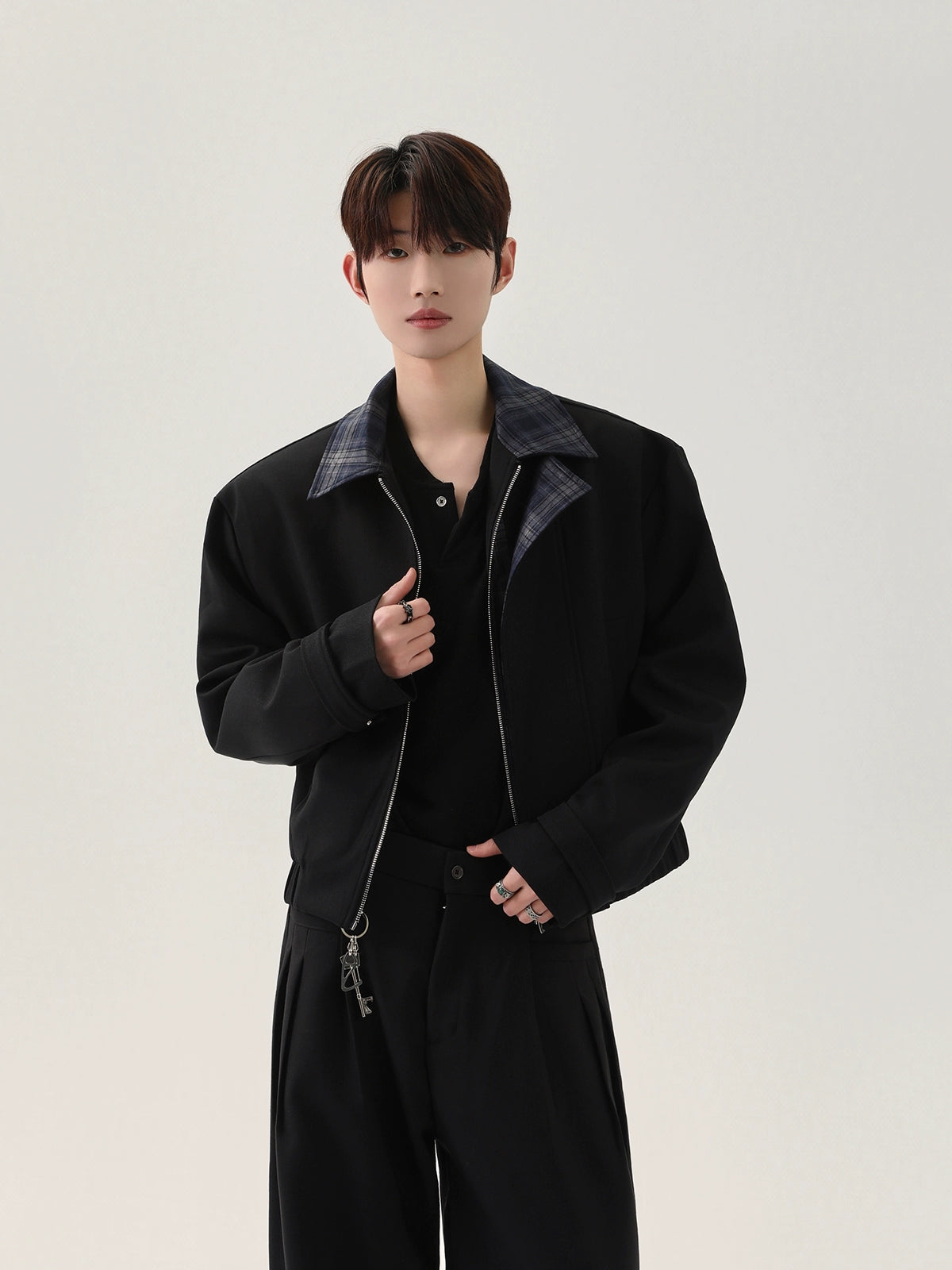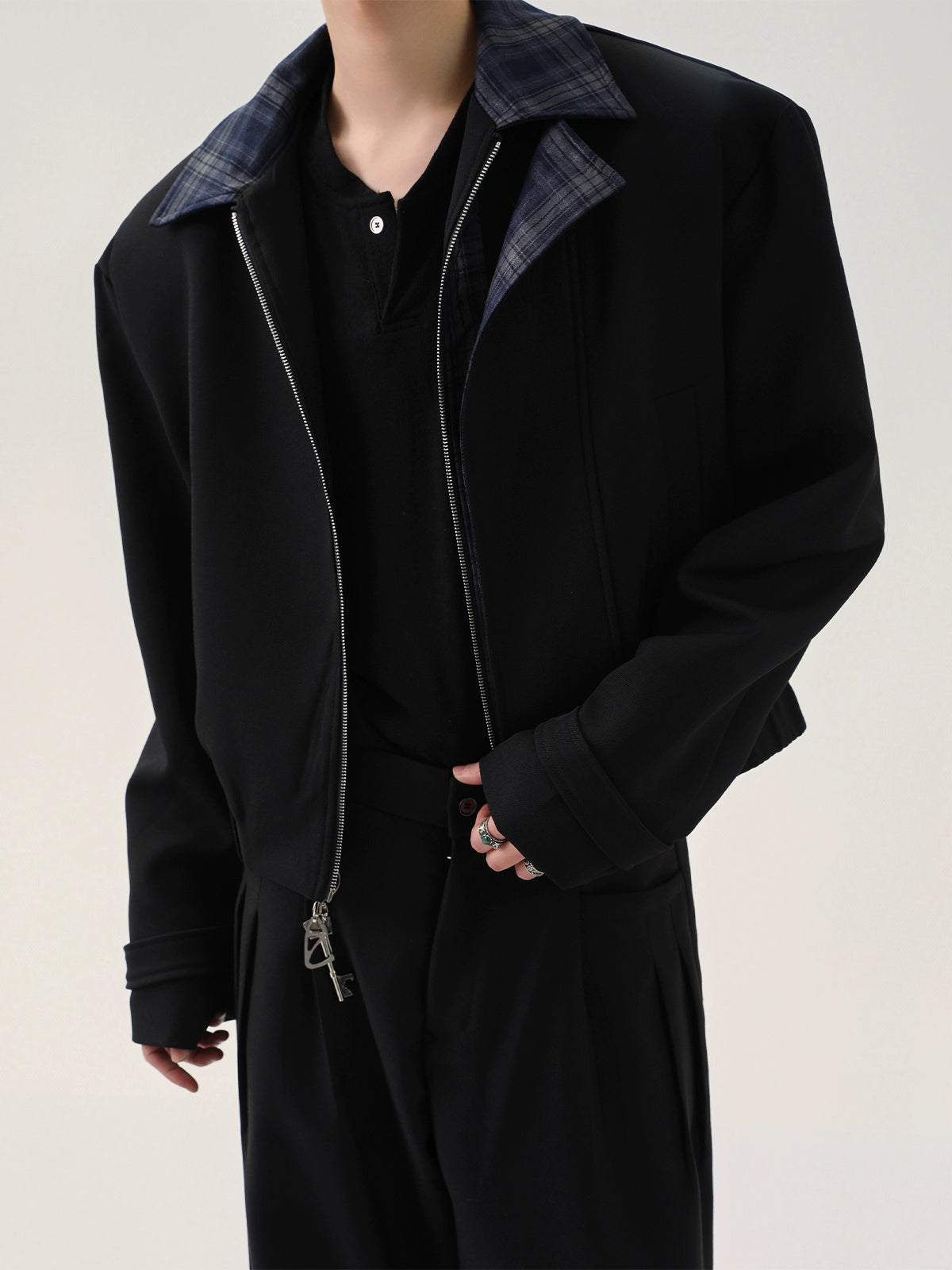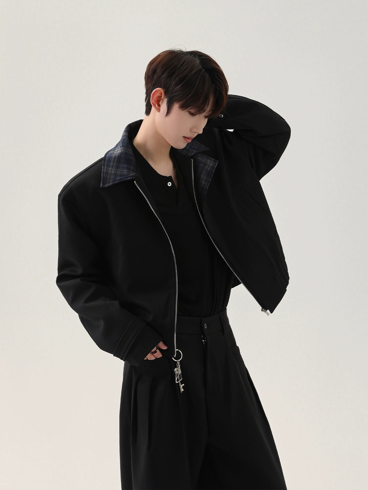 Plaid Collar Structured Short Jacket