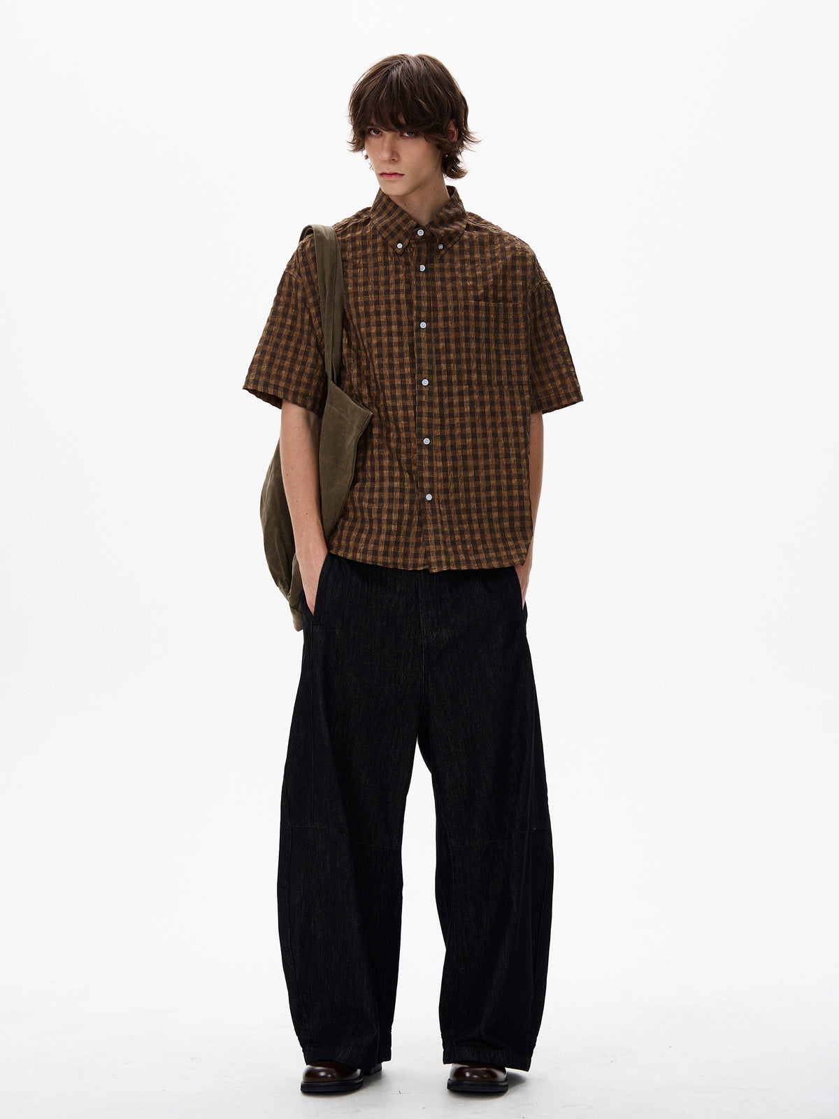 Plaid Short-Sleeve Button-Up Shirt
