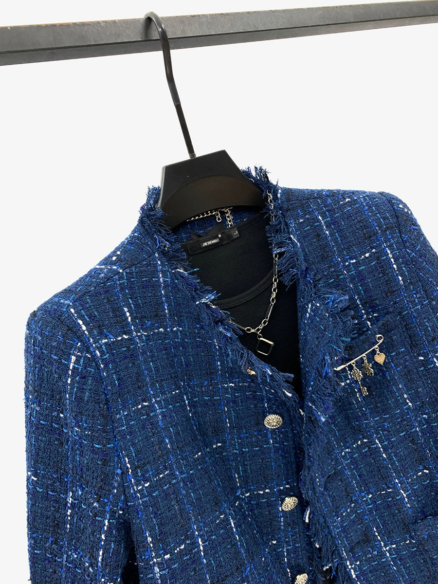 Plaid Tweed Raw Edge Jacket
