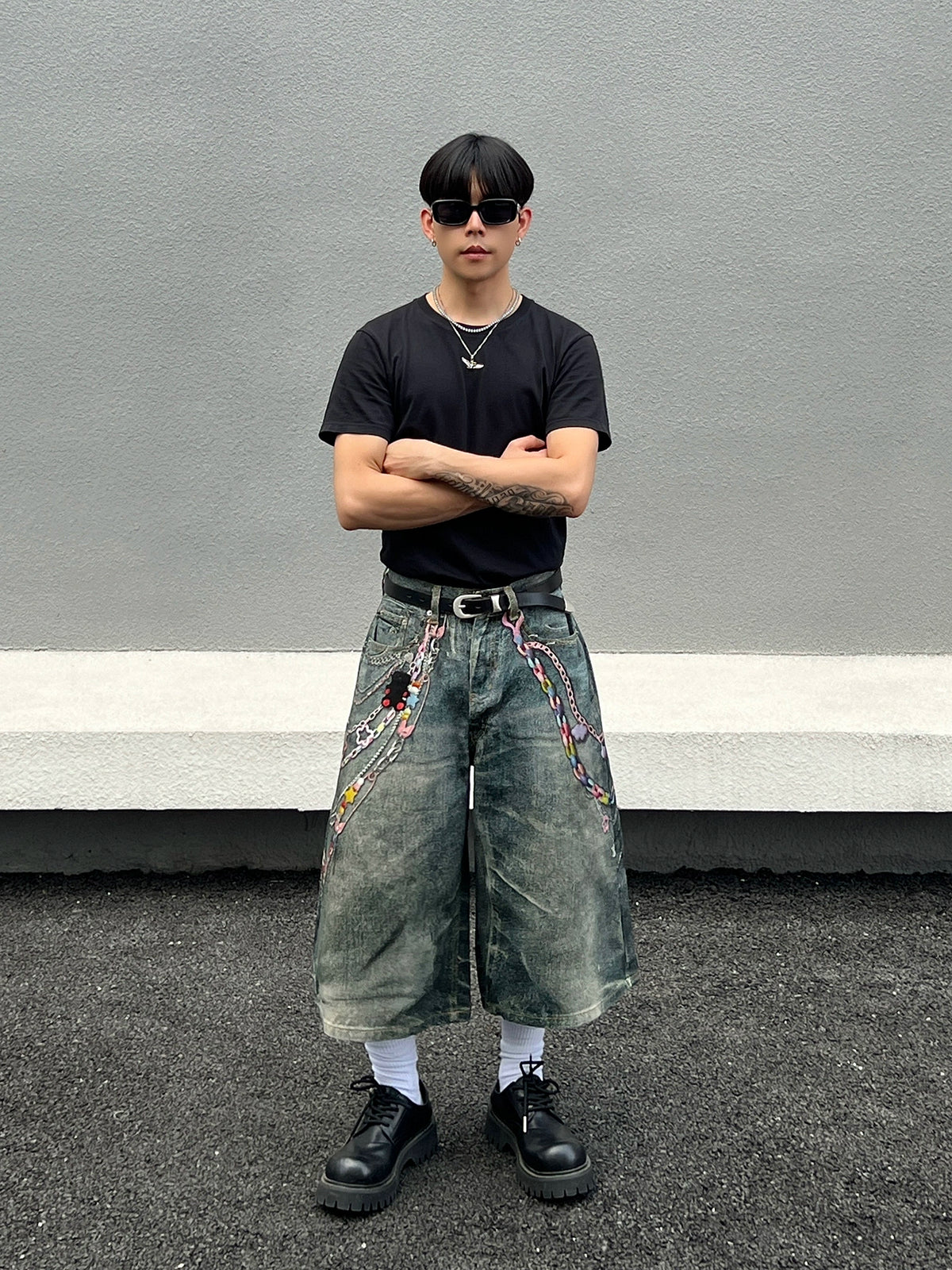 | Size | Length (cm/in) | Waist (cm/in) | Hip (cm/in) | Thigh (cm/in) | Leg Opening (cm/in) |