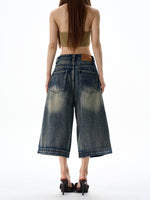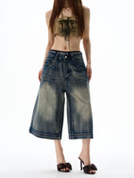 Wide-Leg Cropped Denim Shorts