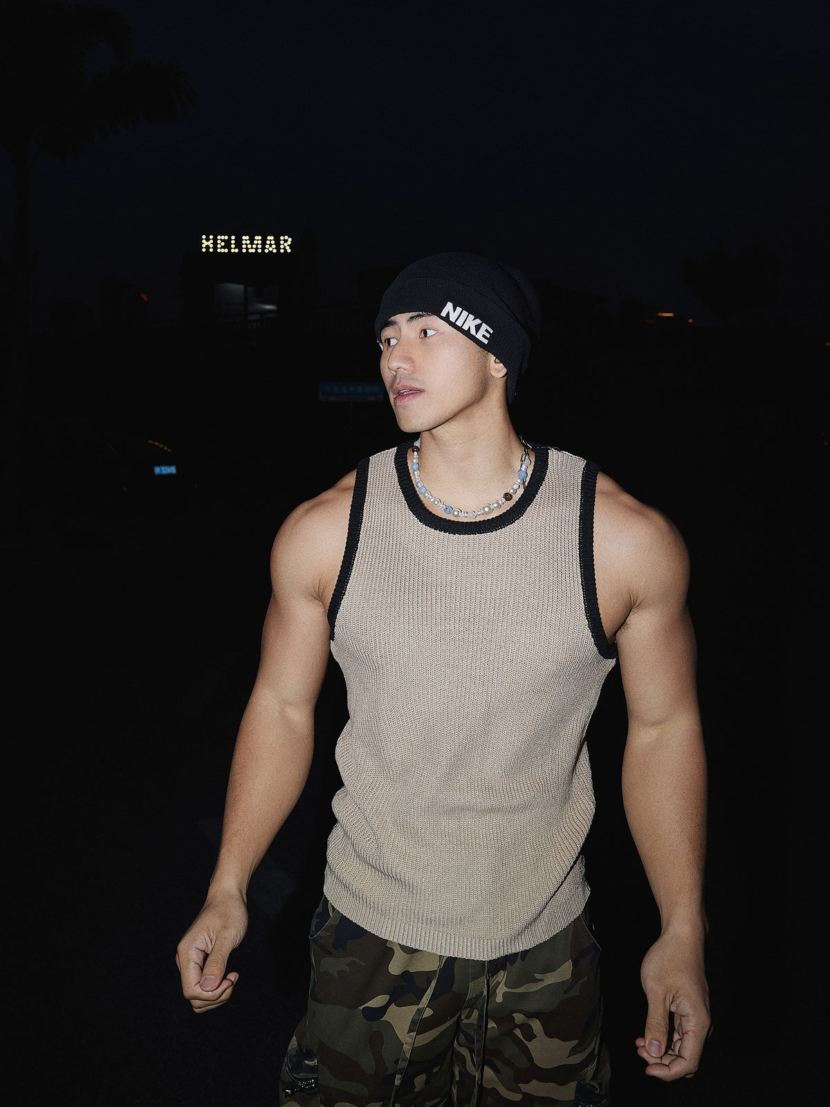 Ribbed Knit Sleeveless Contrast Trim Vest