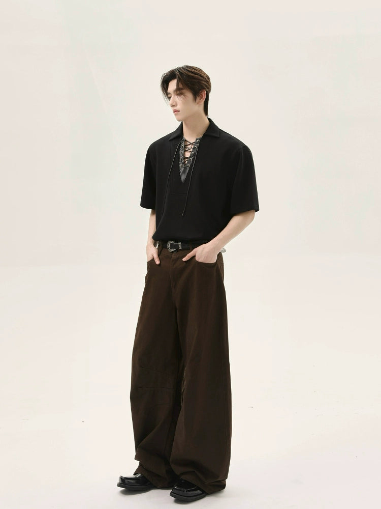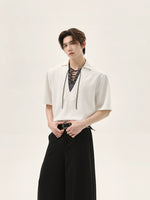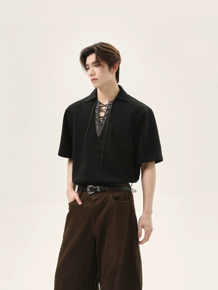 Slim Fit Lapel Drawstring Short Sleeve Pullover