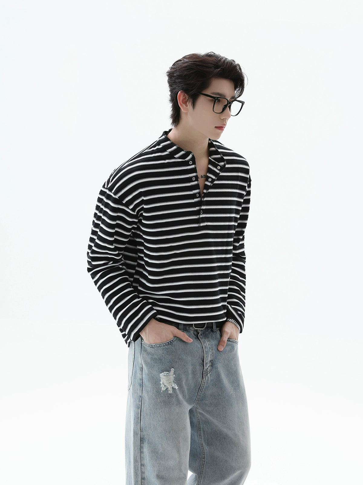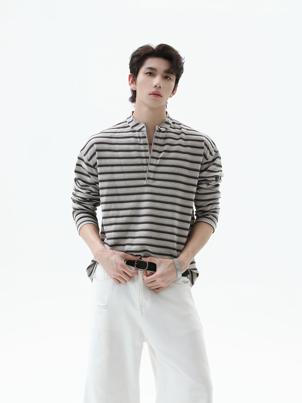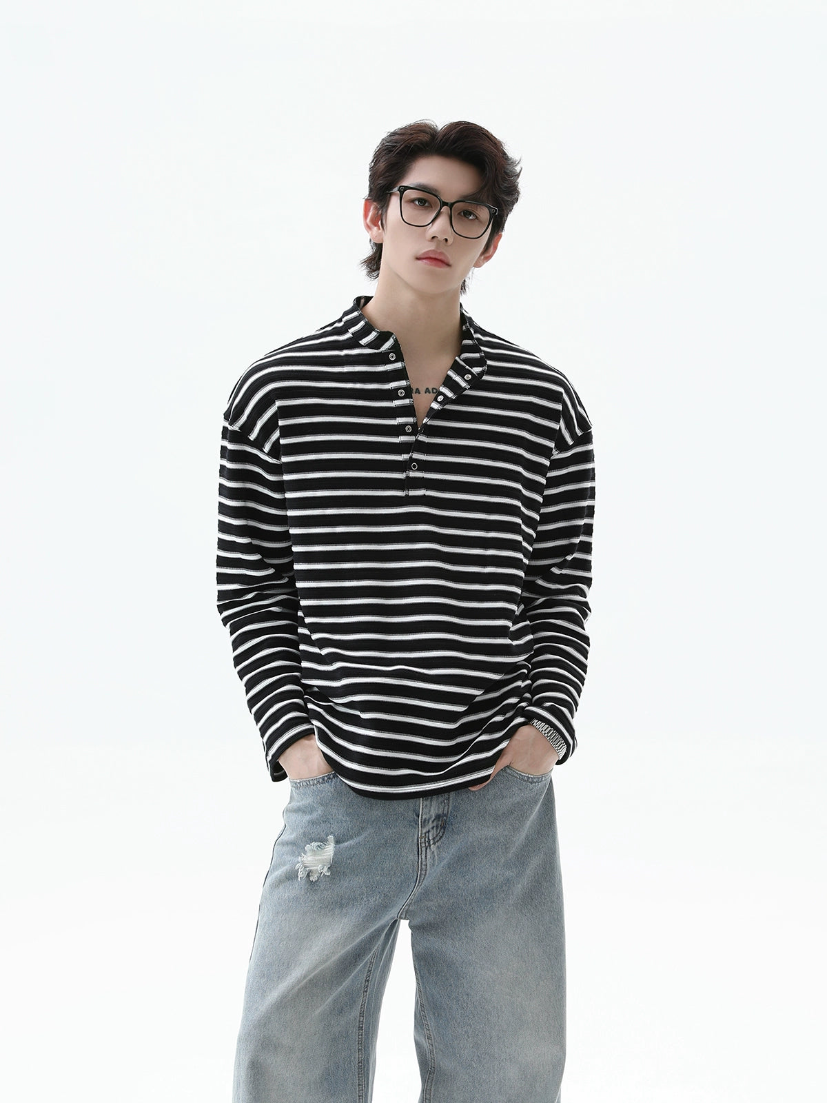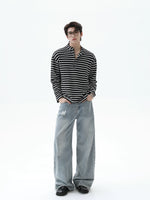 Striped Henley Collar Pullover