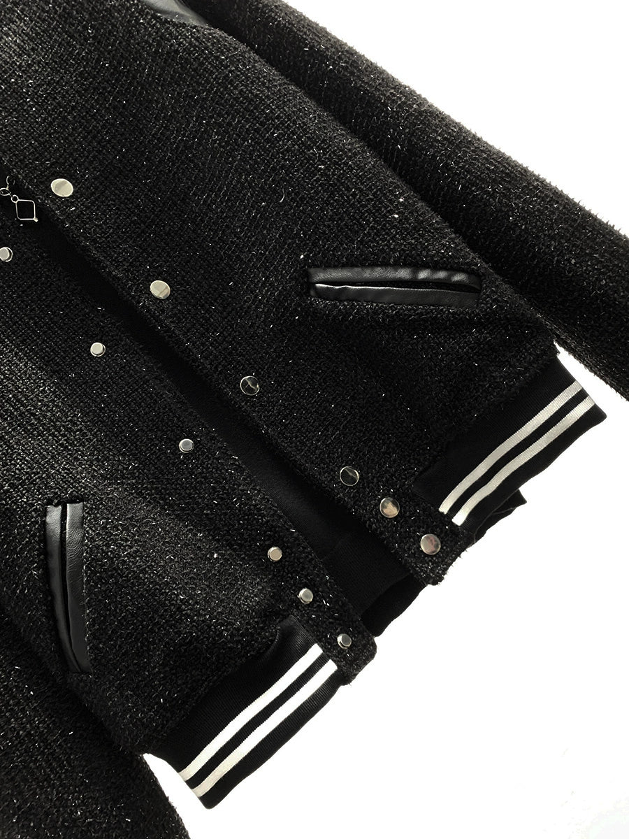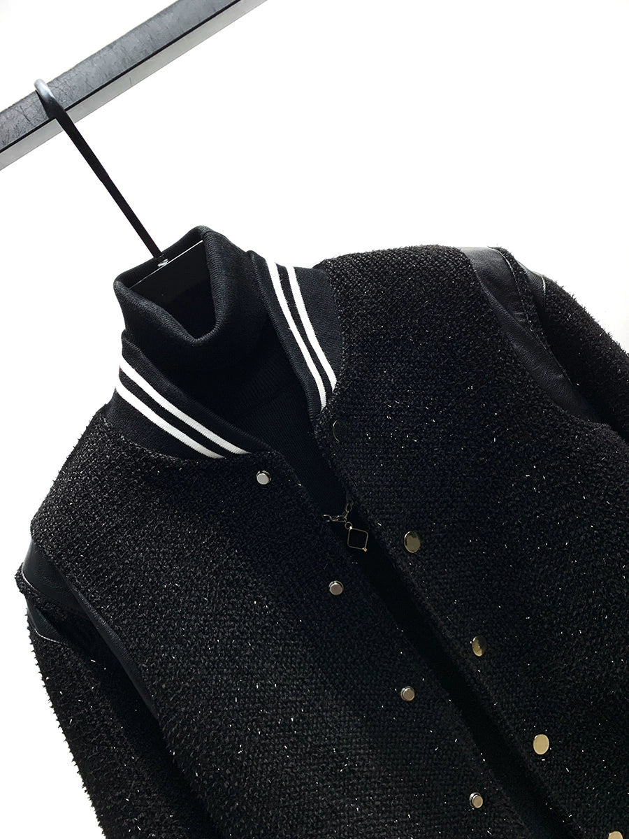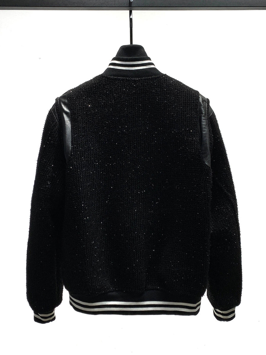 Leather Stitching Wool Baseball Jacket