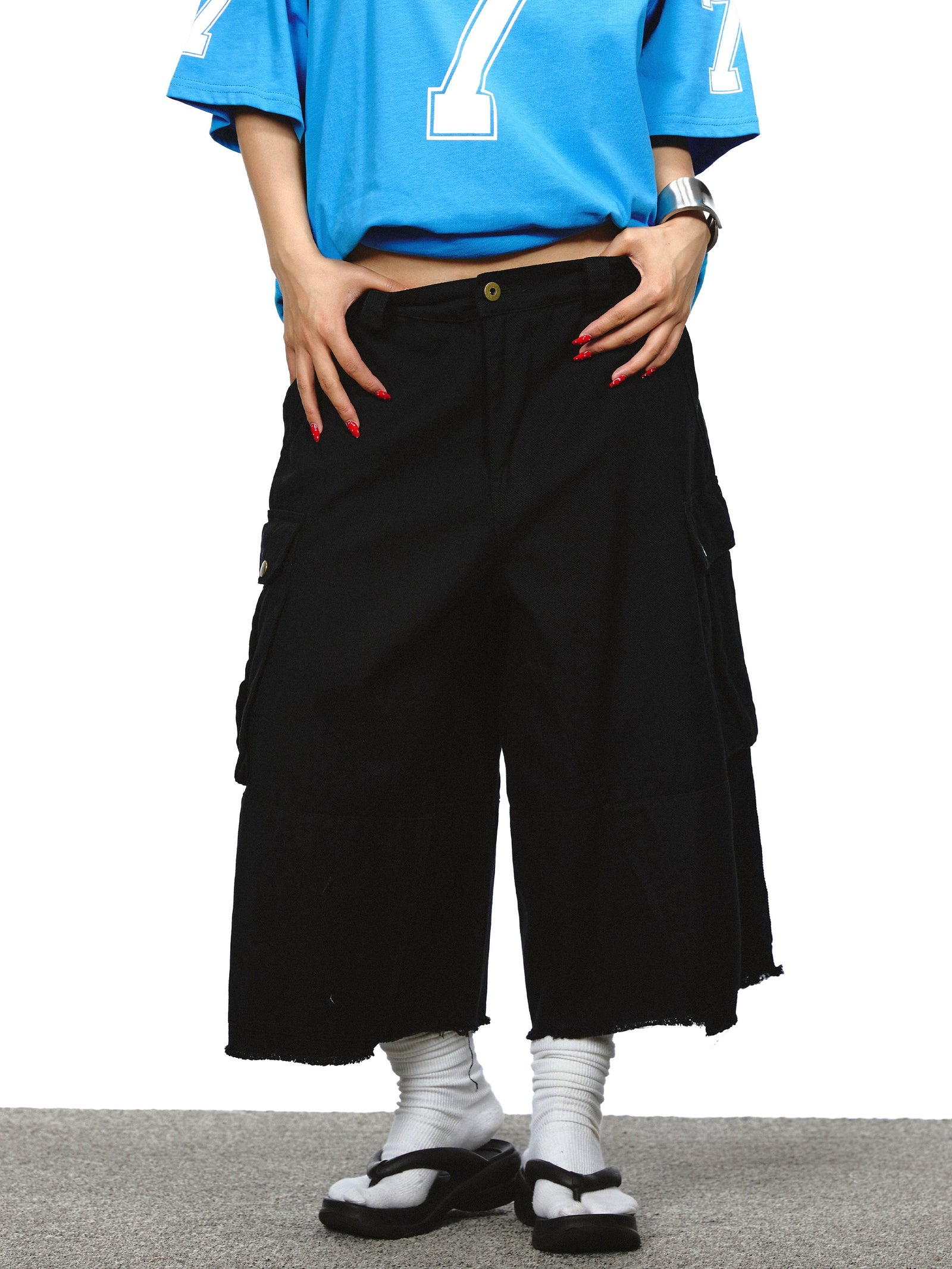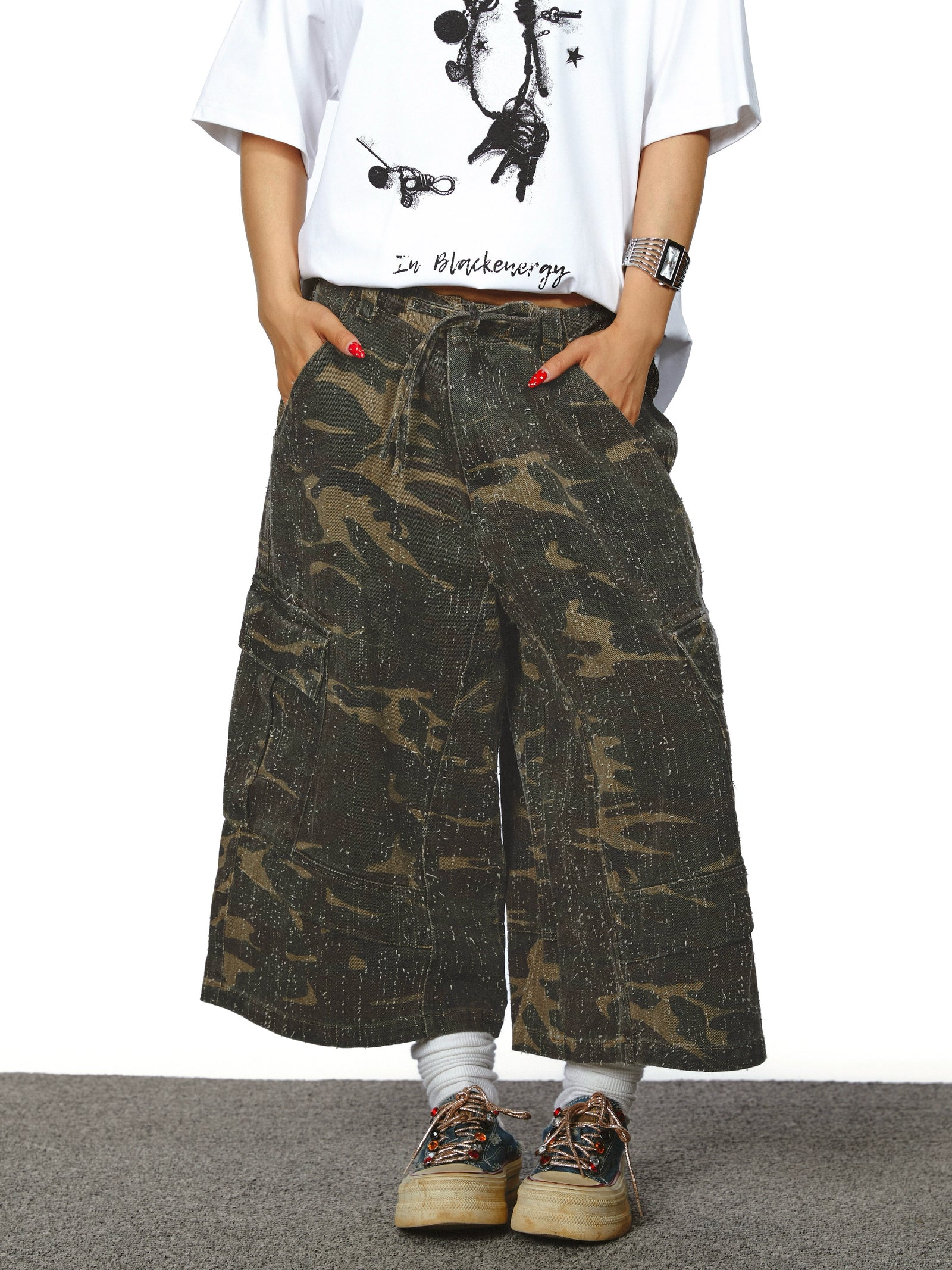 Camouflage Distressed Drawstring Denim Cropped Pants