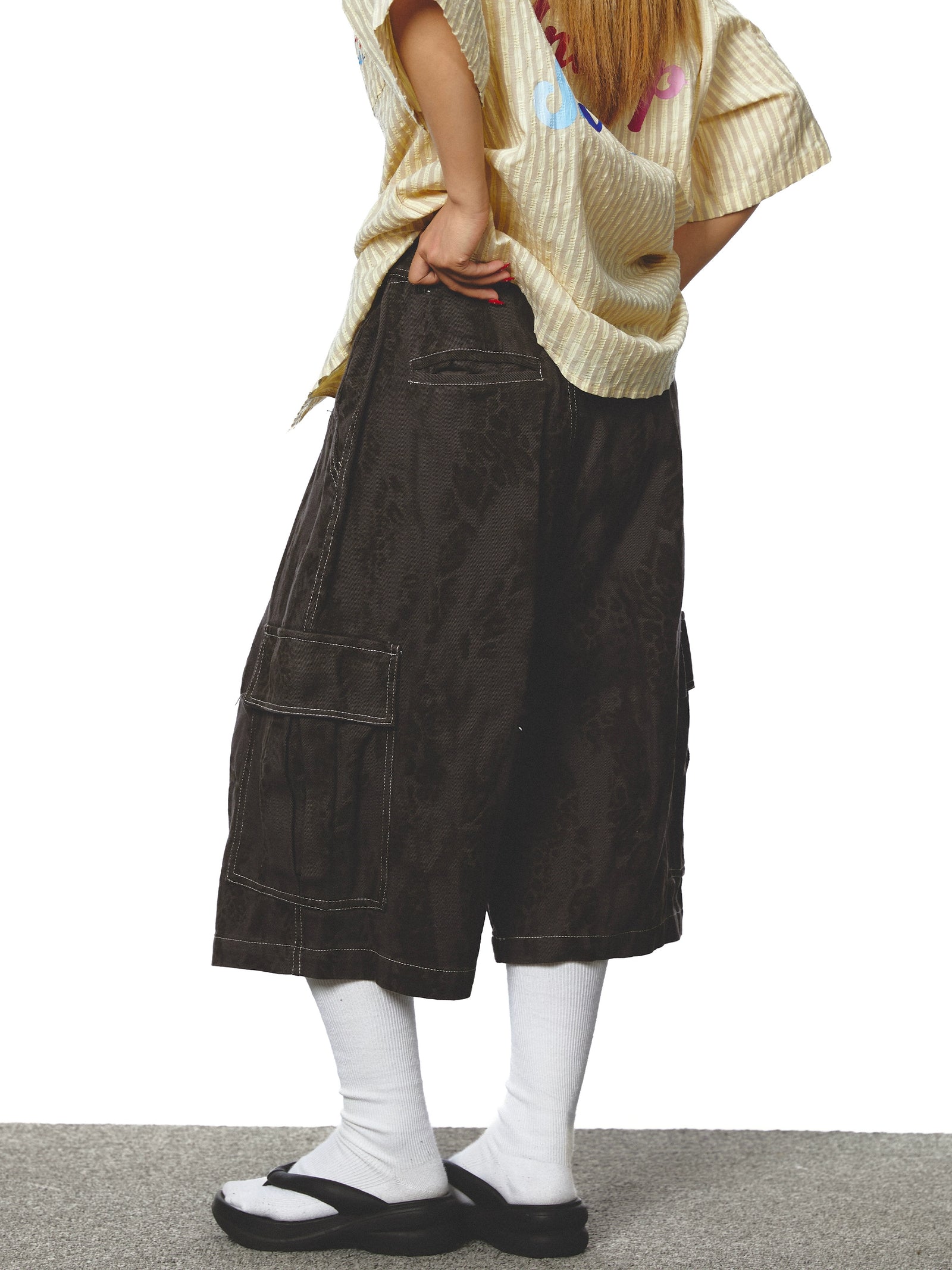 Leopard Print Multi-Pocket Wide-Leg Pants