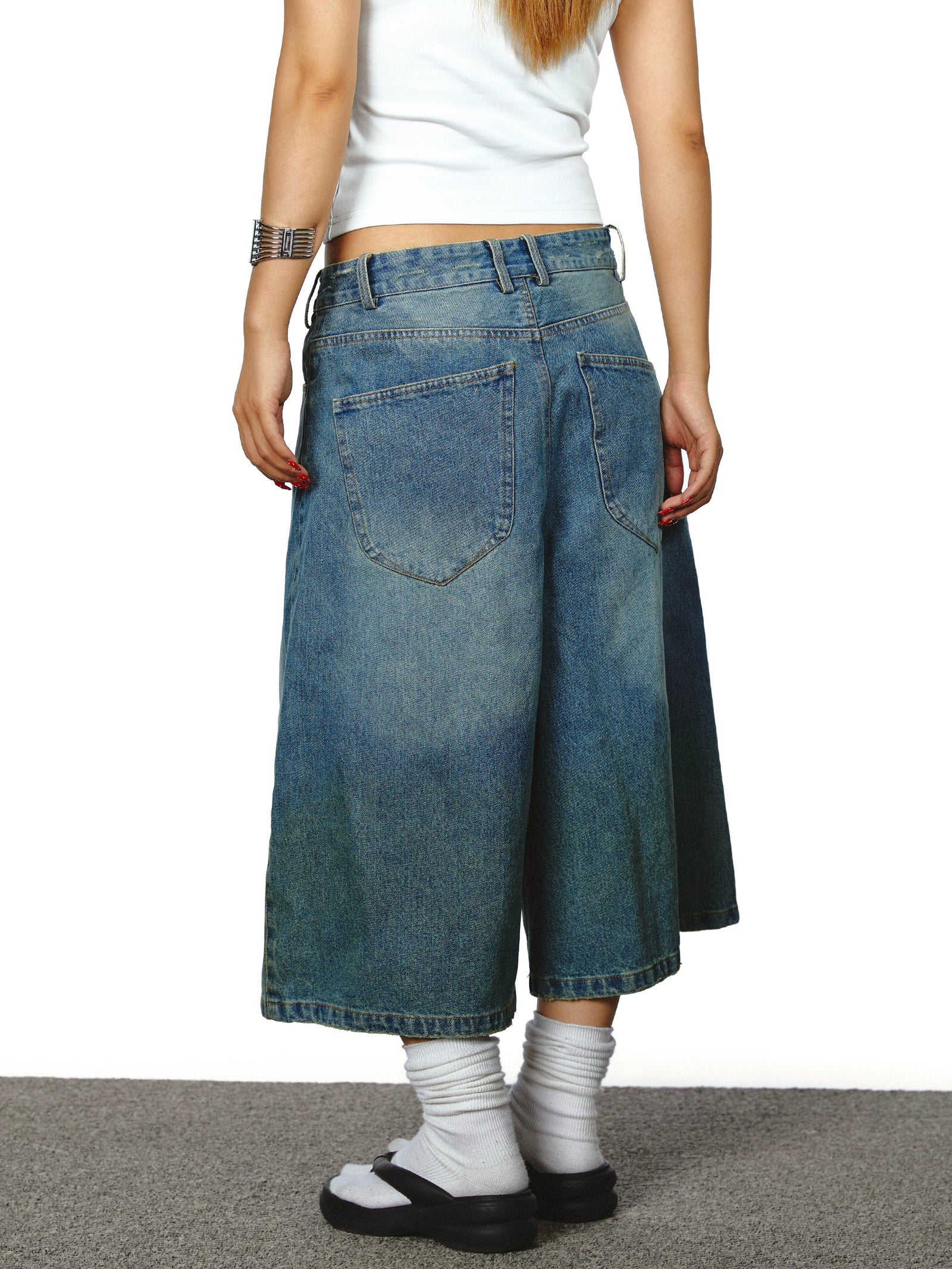 Distressed Tie-Dye Wide-Leg Jeans Pants