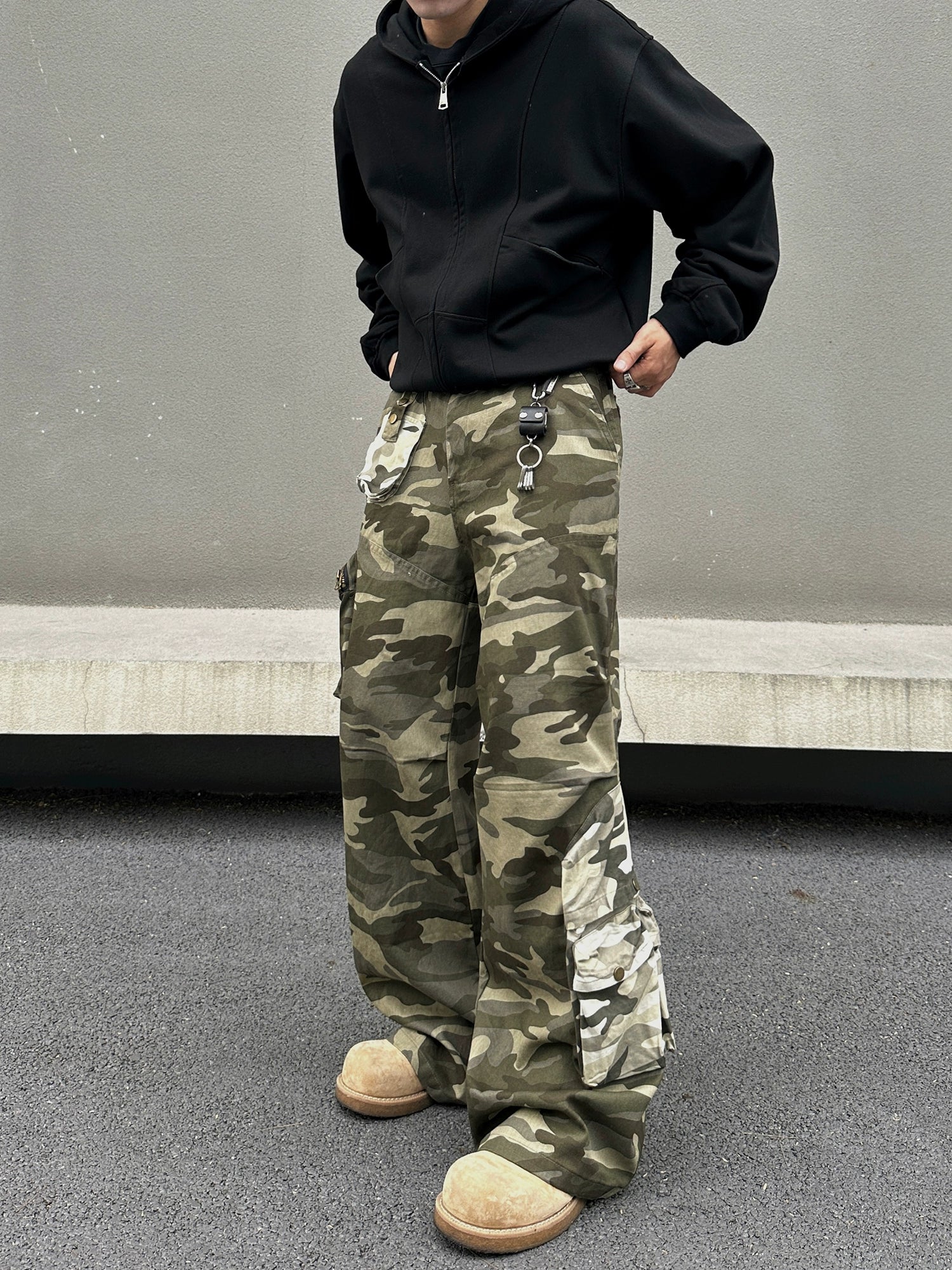 Flared Wide-Leg Multi-Pocket Cargo Pants