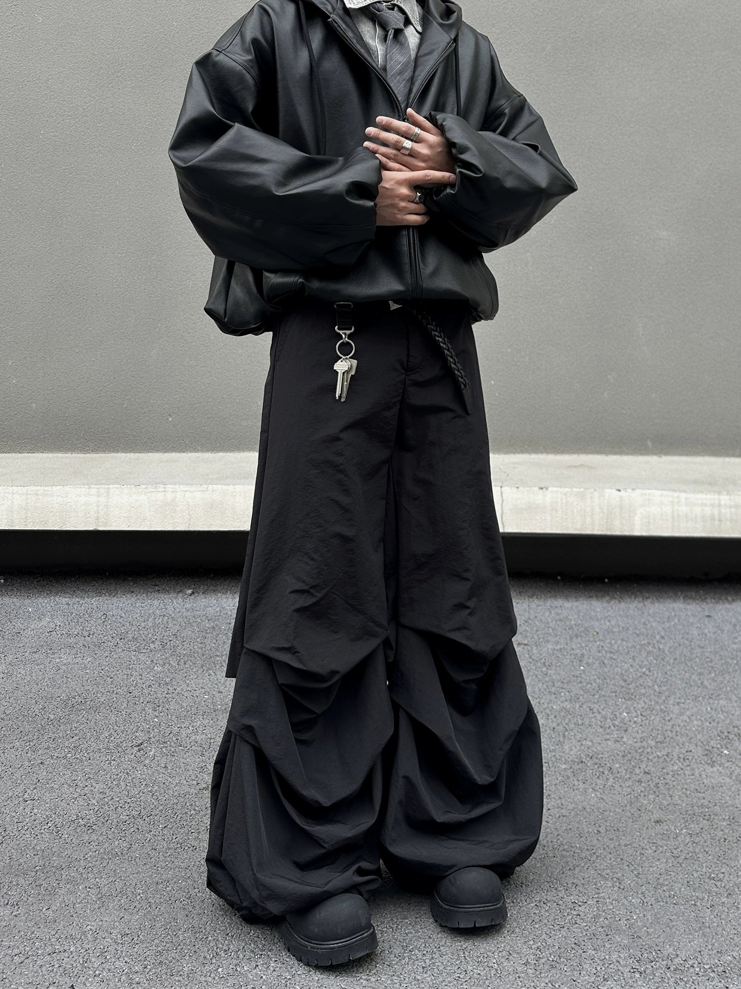 Pleated Nylon Wide-Leg Paratrooper Pants
