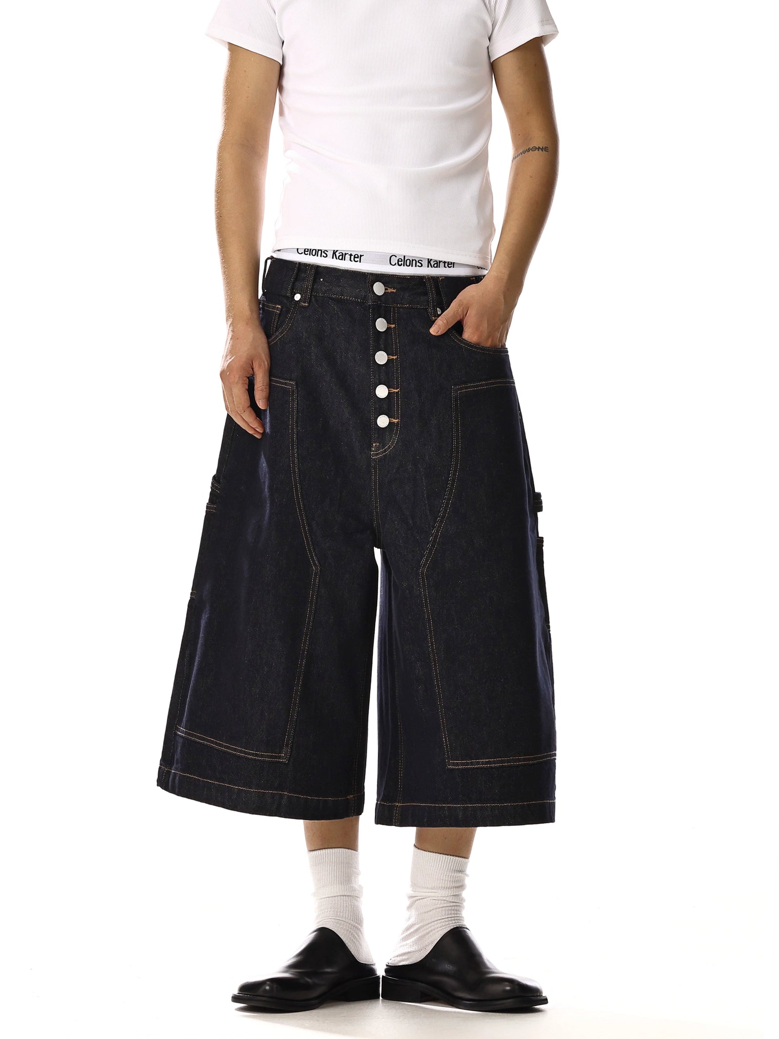 Wide-Leg Cropped Denim Cargo Pants