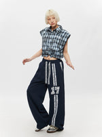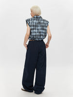 Plaid Drawstring Sleeveless Button-Up Shirt