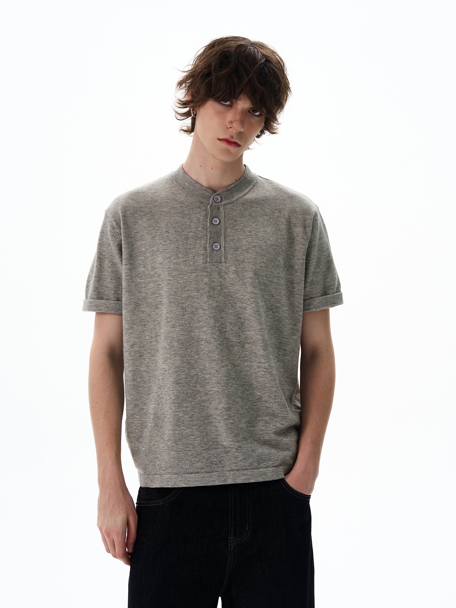 Knitted Henley Collar Pullover