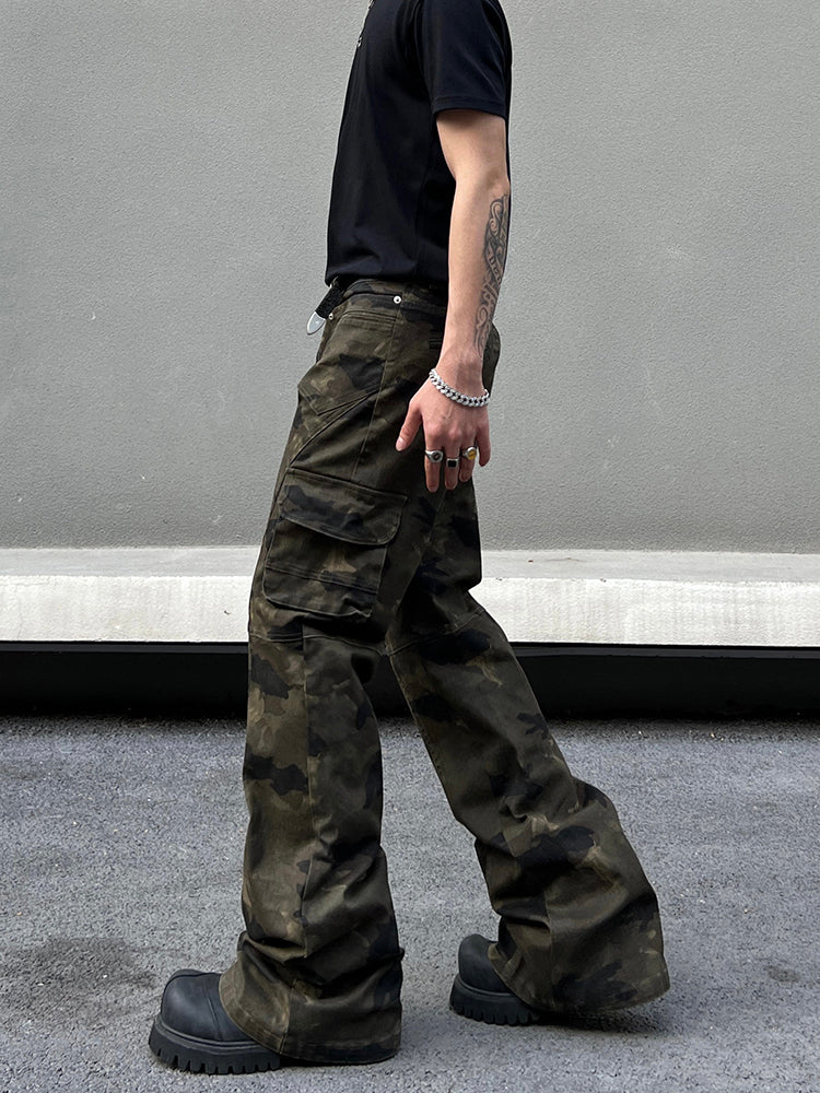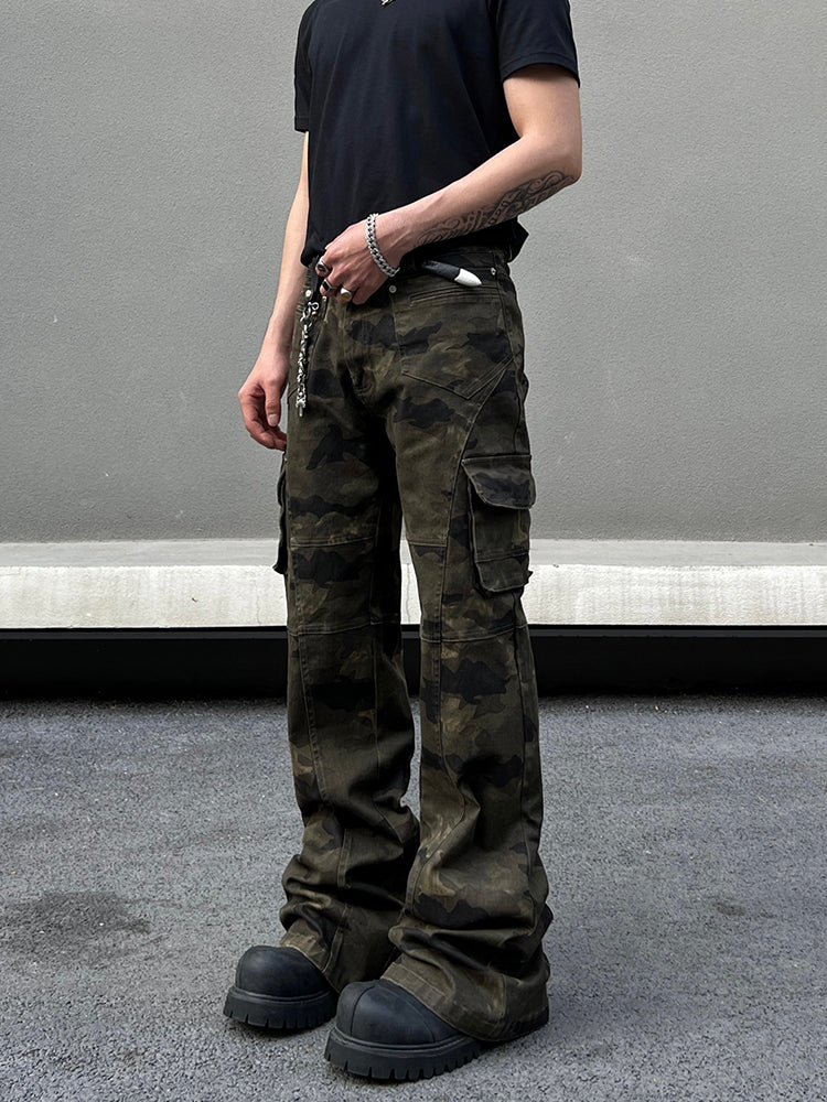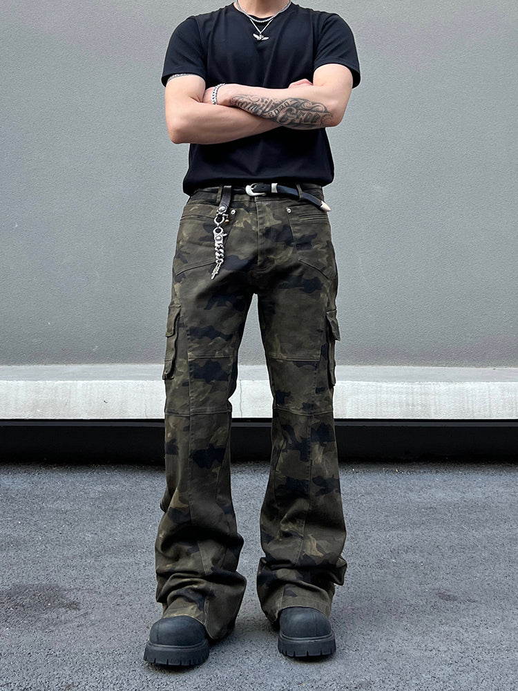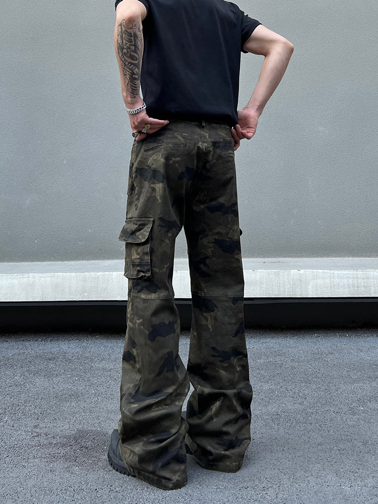 Camo Cargo Flared Slim Pants