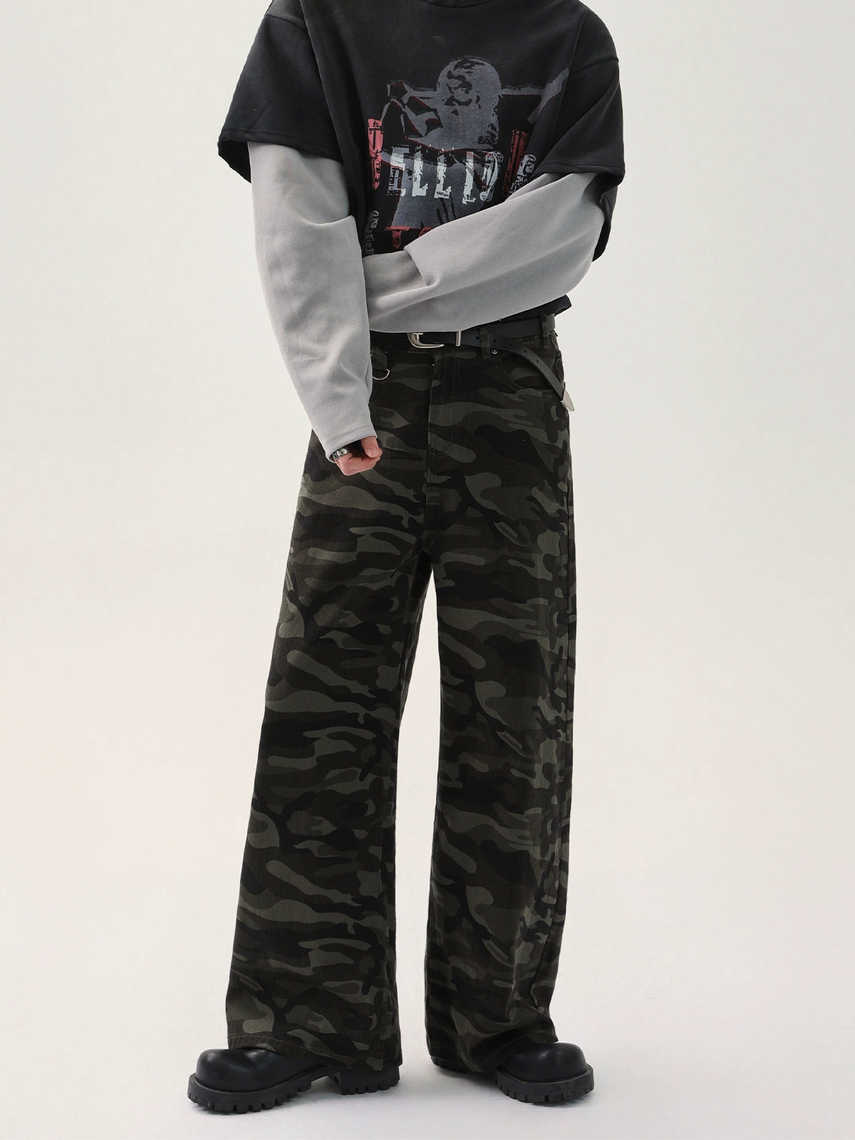 Camouflage Wide-Leg Cargo Pants