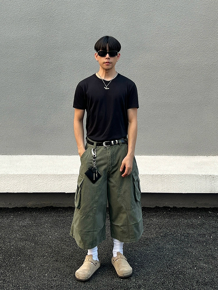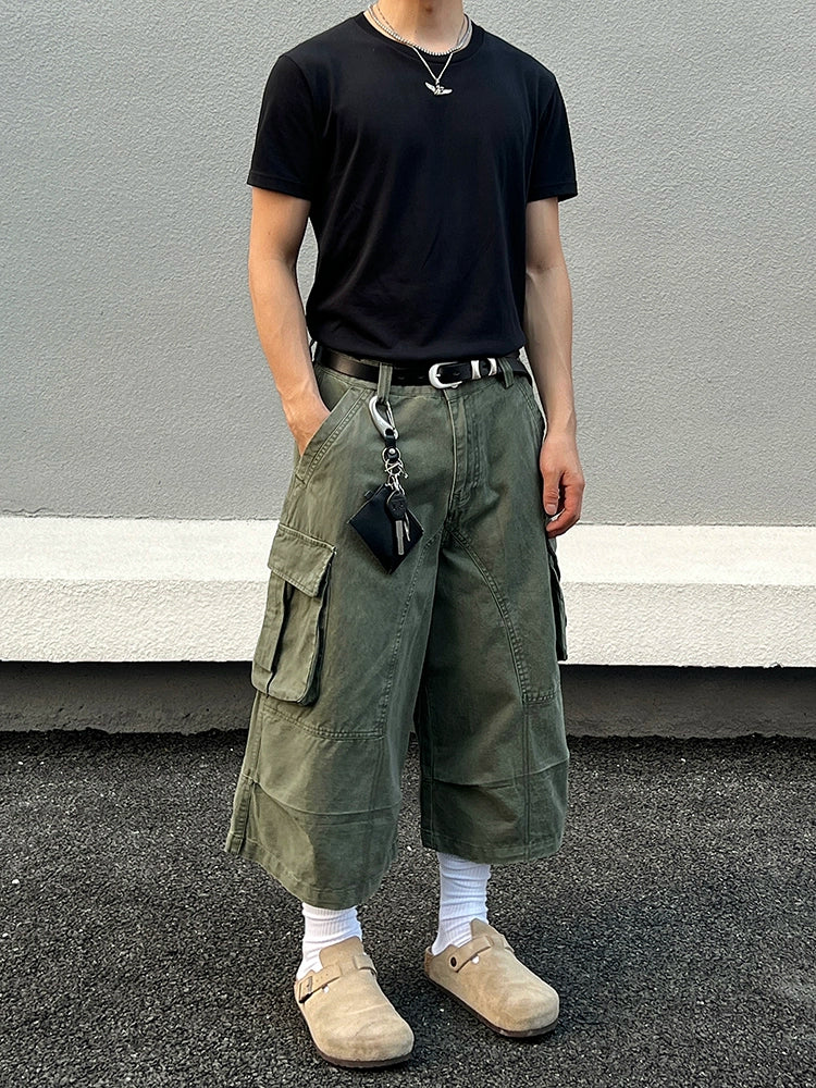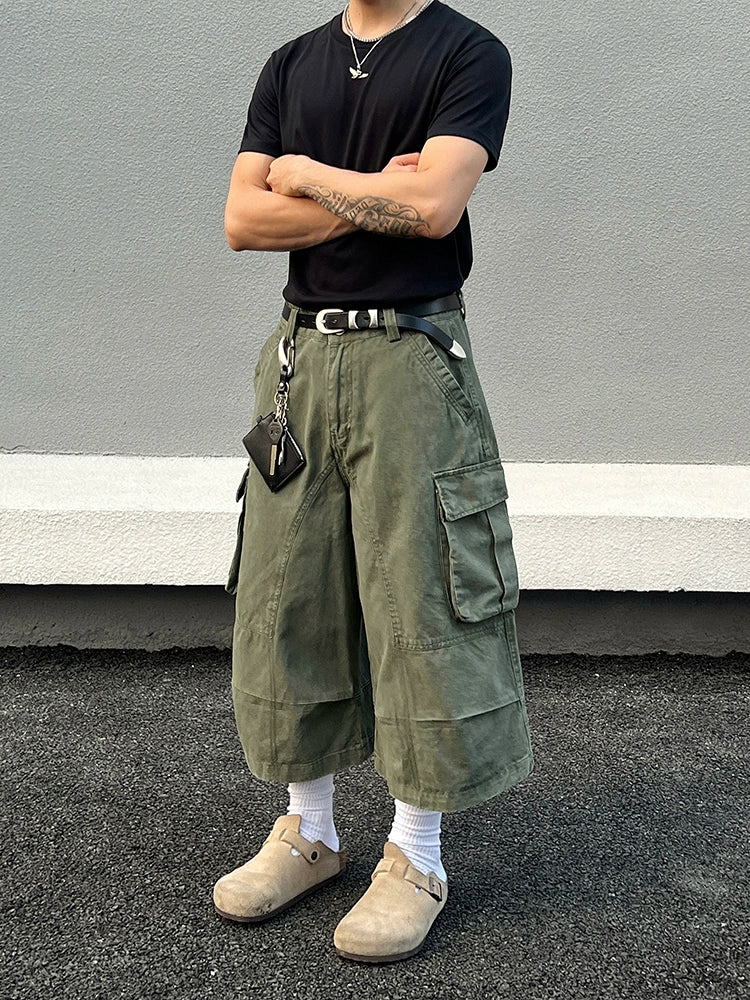 Cropped Multi-Pocket Wide-Leg Cargo Pants