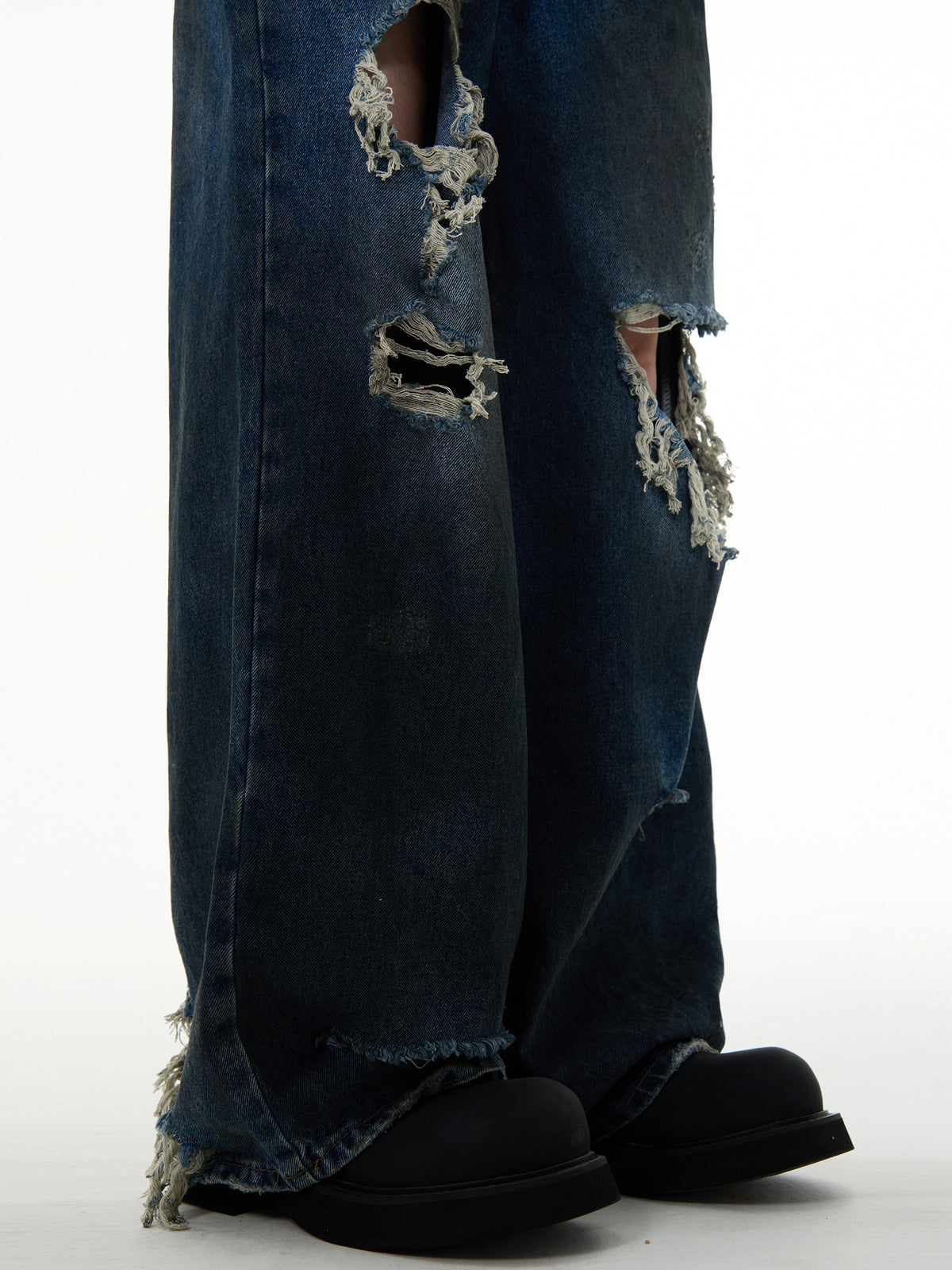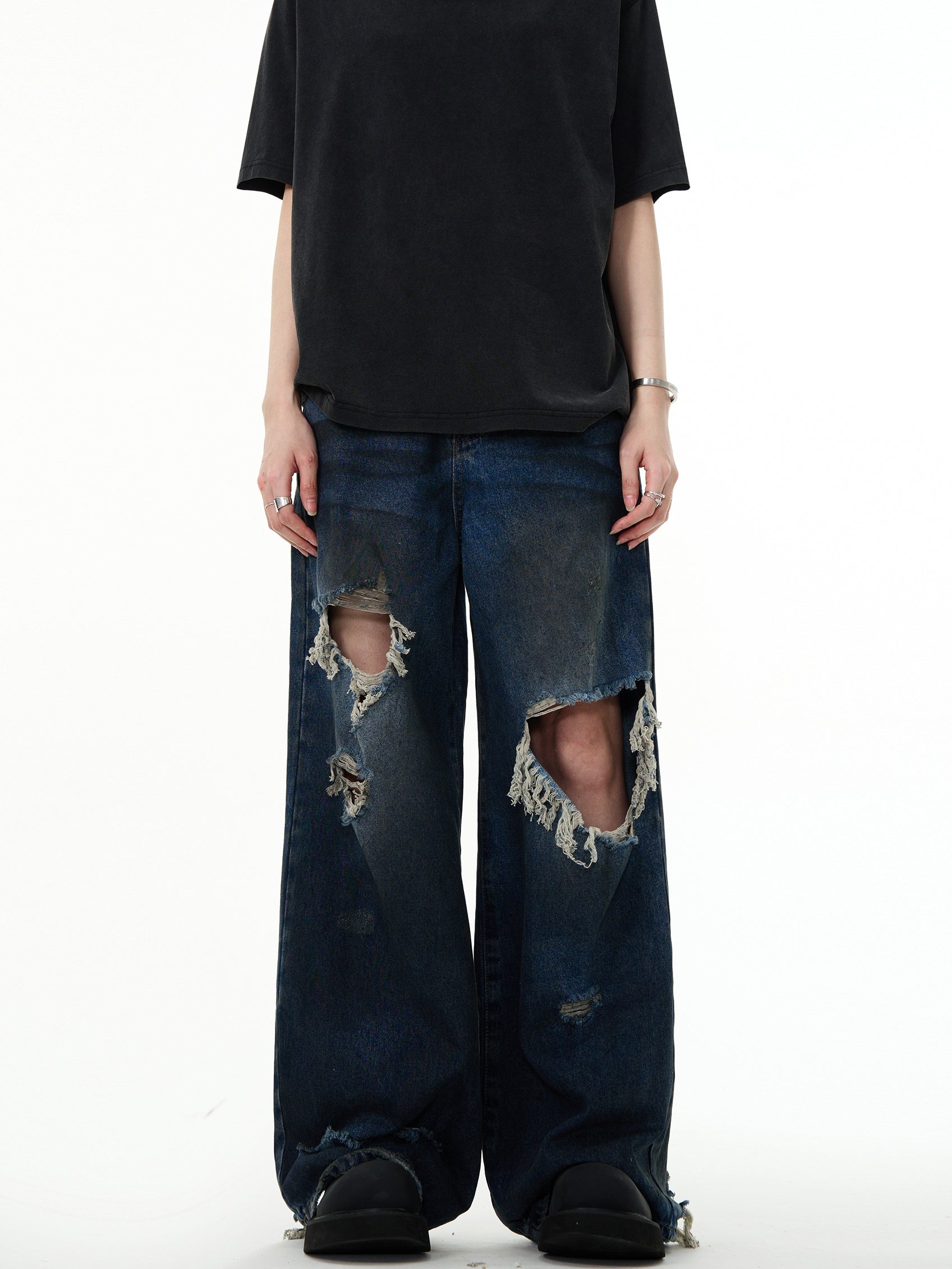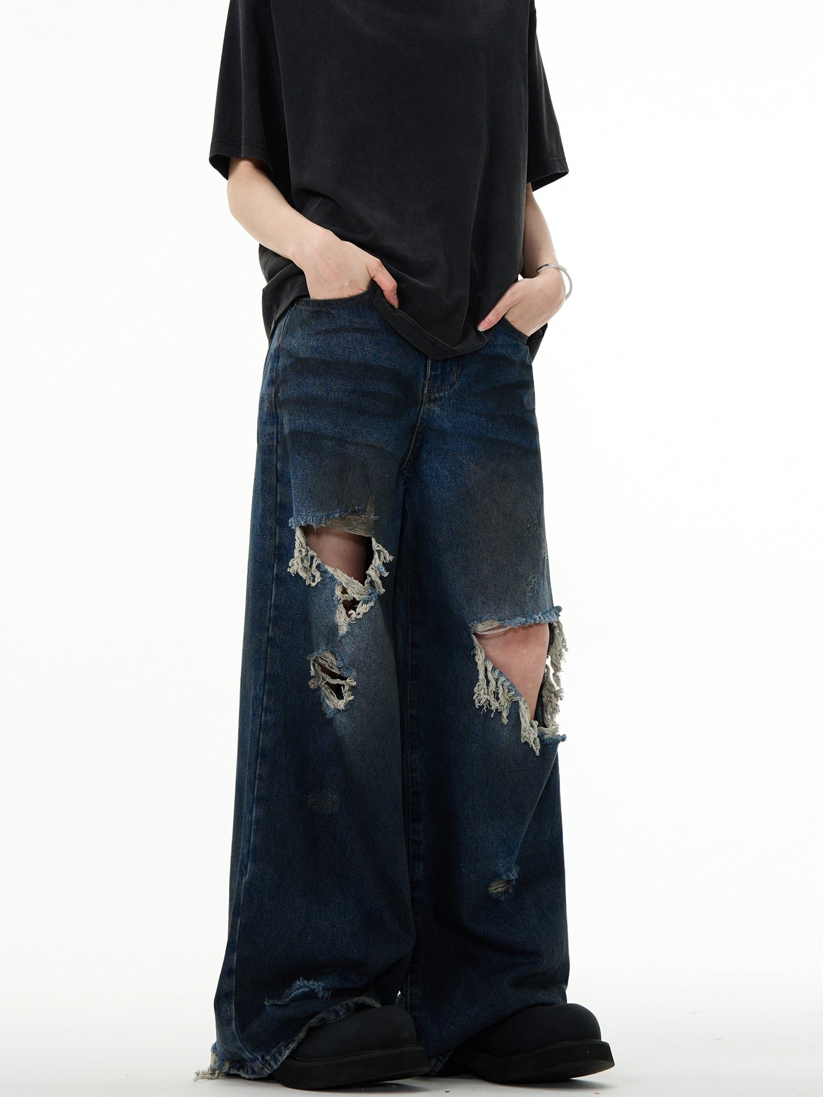 Distressed Wide-Leg Ripped Floor-Length Pants